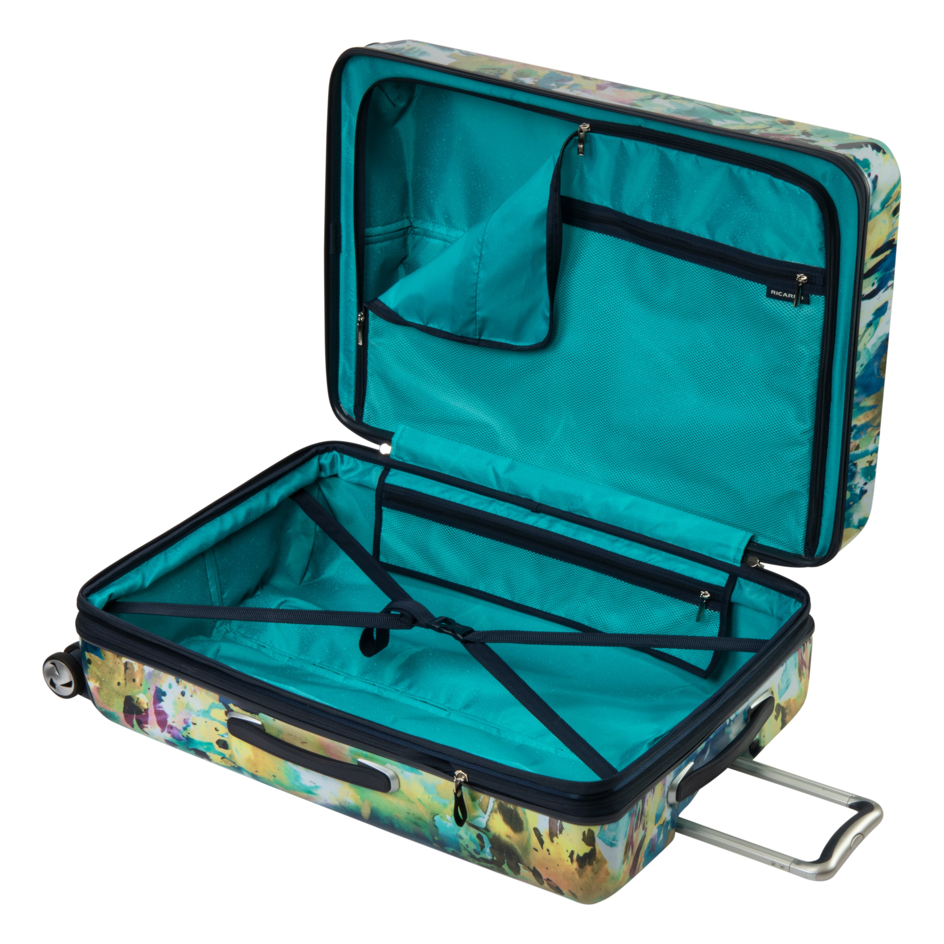 With its striking pattern and its well-designed pop-of-color interior, this lightweight collection is designed for modern versatility.