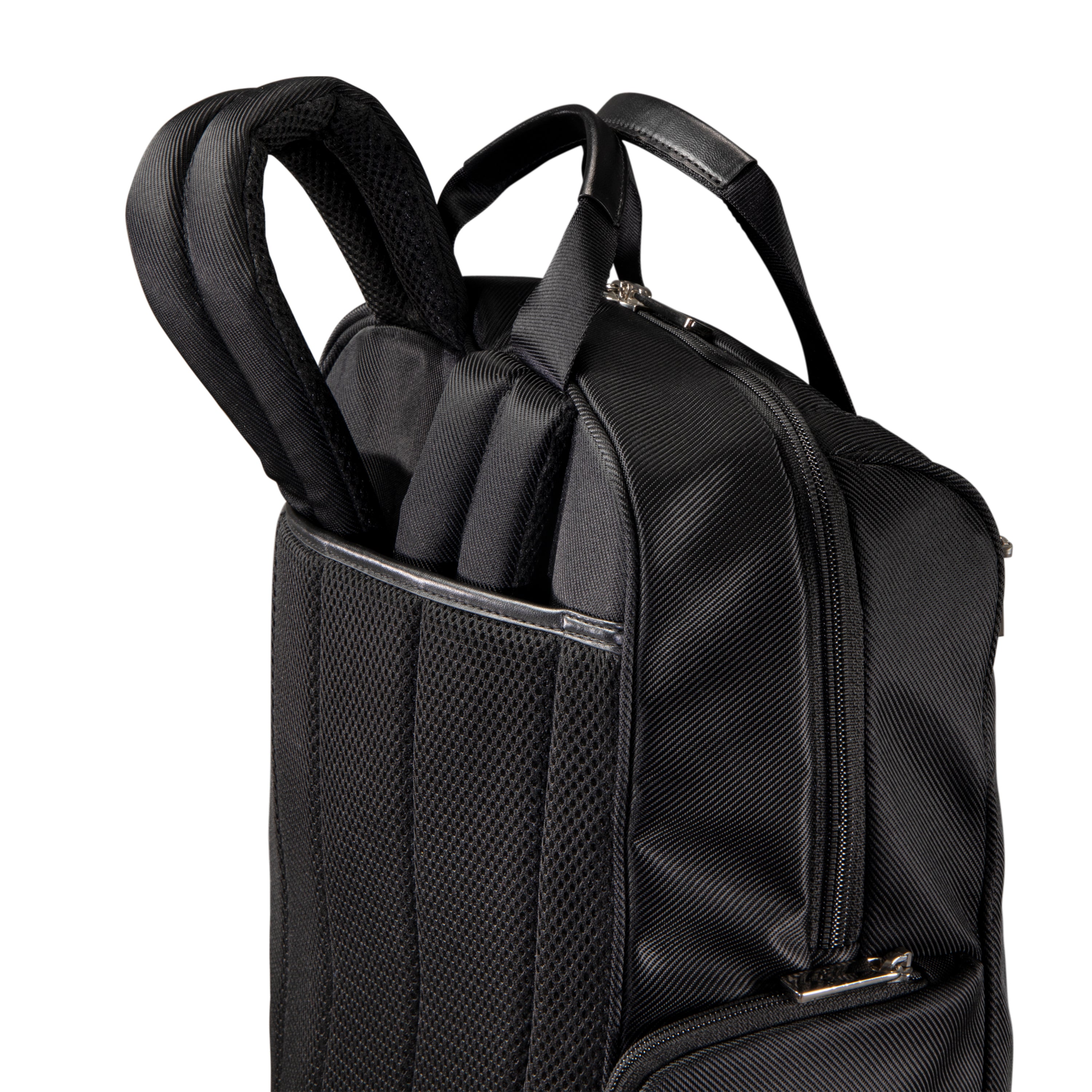 One of the most versatile pieces in the Rodeo Drive 2.0 collection, the tech-friendly Convertible Backpack offers generous packing capacity in a Nanotex water-resistant fabric exterior. Featuring plenty of pockets to keep things organizedincluding quilted padded laptop(holds up to a 16 inch laptop) and tablet pockets, and a handle pass-through strap for transporting it on top of a suitcase, this great-looking backpack makes packing for a short getaway (leisure or business) quick and easy.