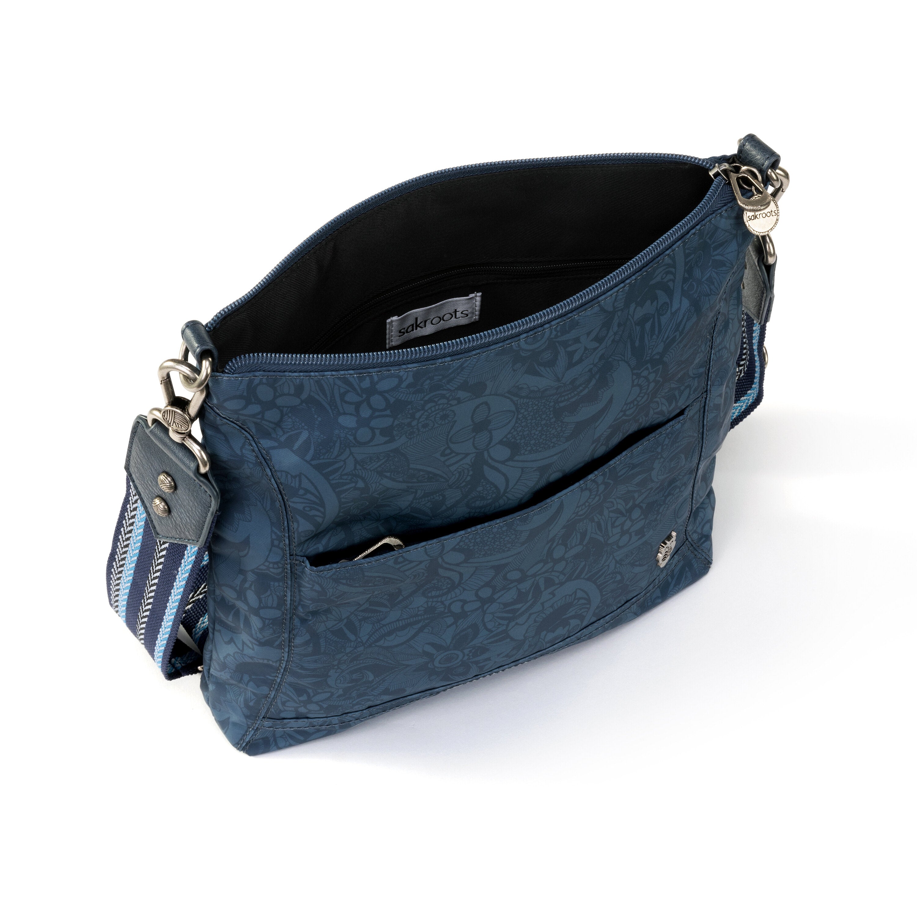 Our unique artist prints and a striped strap update this classic crossbody, made from sustainable materials. It slings comfortable across your shoulder and features plenty of pockets to keep you hands-free and organized on the go.