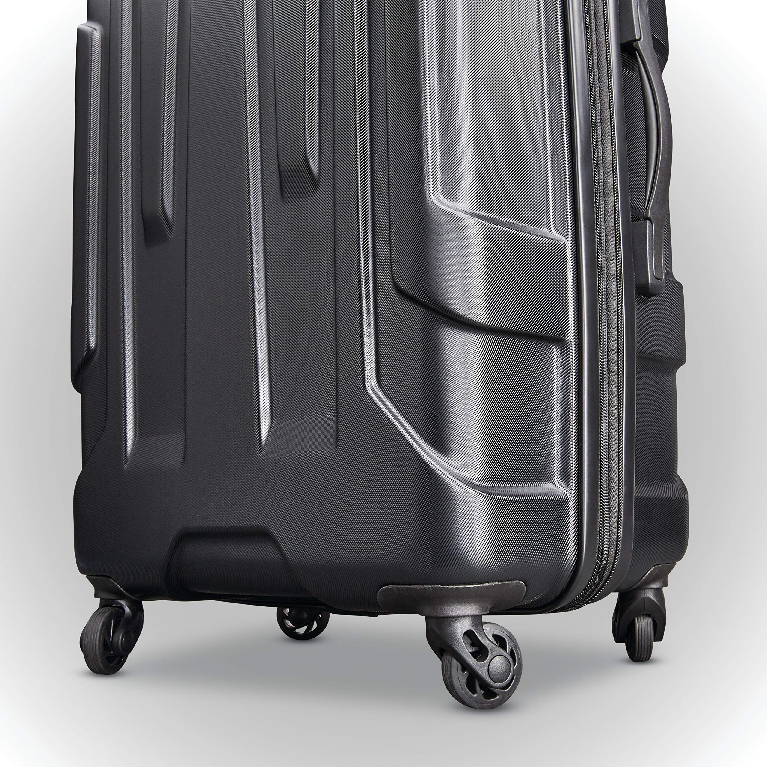 Packing is easy with the spacious and functional Samsonite 24" CentricSpinner. Spinner made of vacuum formed polycarbonate, a highly impact-resistant plastic that is strong and lightweight. Top and side carry handlesallows you to lift the case with ease and comfort, or carry it by hand whenrolling isn't an option. TSA approved lock. Expandable design opens with azipper to add more carrying space to the interior of your suitcase.Lightweight spinner wheels allow 360 degree upright rolling in multipledirections. Interior compression straps. Interior features two zipper pockets.Imported. Measurements: Width: 15 1„2 in Depth: 10 1„2 in Height: 24 inWeight: 8 lbs 5.6 oz