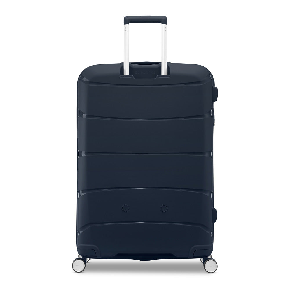 Our instantly-iconic Outline Pro polypropylene collection takes you confidently in the direction of your destination thanks to its elevated design and eye-catching color options. This smart and sleek piece is all systems go while pulling out all the stops: from its molded trolley handle to easy-lift top and side grips, major touchpoints are treated with Sam-AMH technology to help keep hands clean. With integrated extras like a built-in TSA lock and USB port (available in carry-on sizes only), as well as superb-adaptable interior lined in our eco-conscious Recyclex fabric, this all-time travel essential bridges form and function flawlessly. Bordering on genius. Say it to yourself: Youve earned this upgrade.