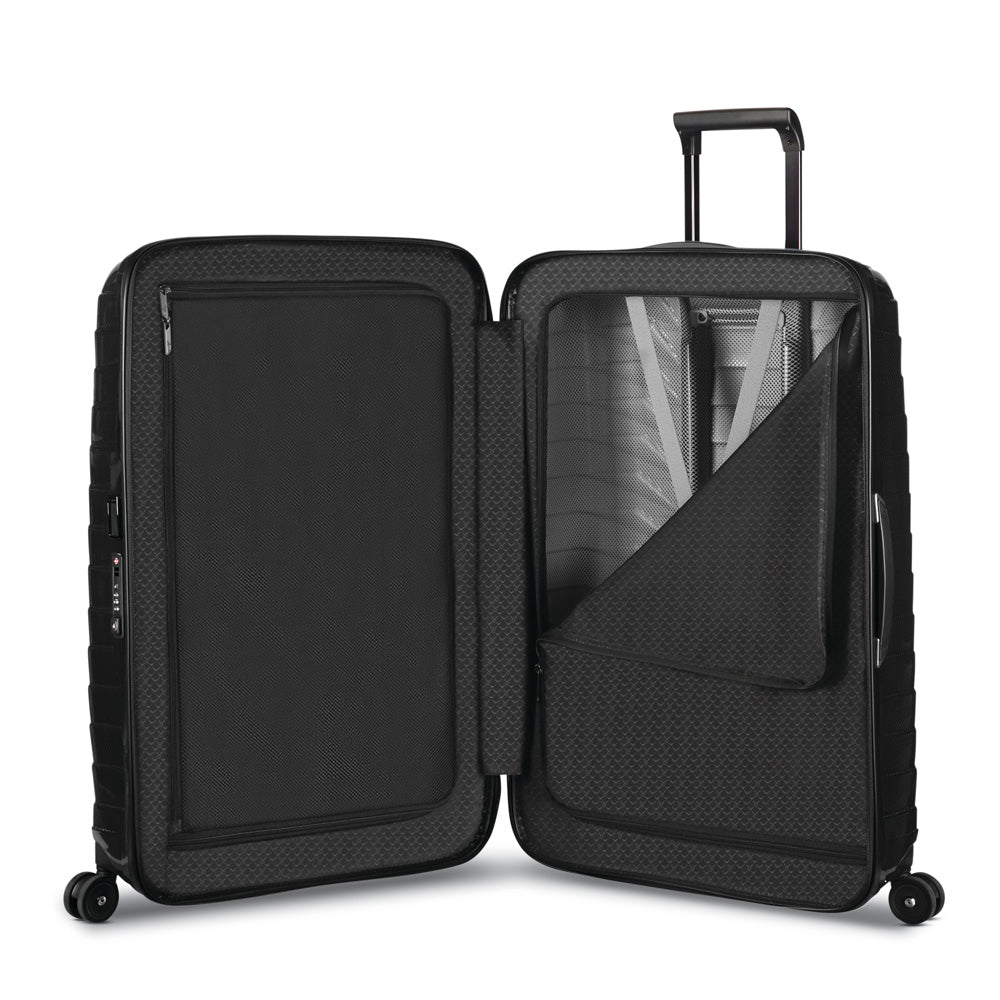 Take Proxis luggage on your next trip to travel with both confidence and style. The Roxkin outer shell provides remarkable strength and resilience in a multi-layered lightweight design that you can find only at Samsonite. The ergonomic handle, dual spinner wheels, and TSA-friendly lock add convenience to your experience, providing you with everything that you need when youre on the move.