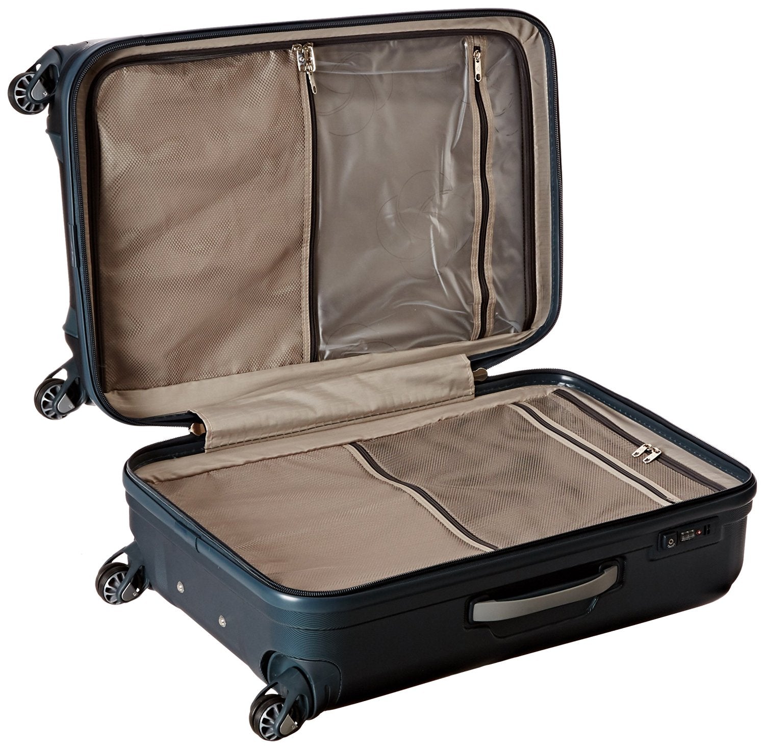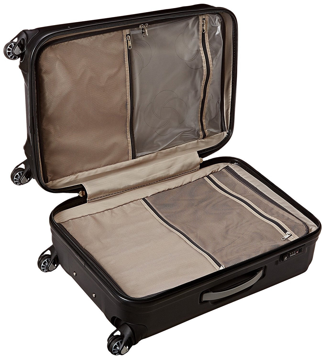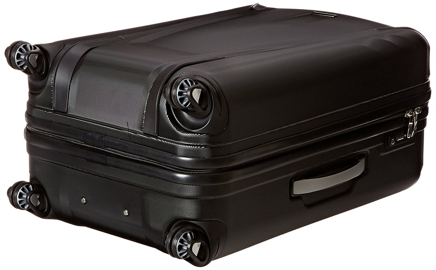 - Four multi-directional split spherical spinner wheels for easy mobility. Rolls upright so there is no weight on your arm or shoulder