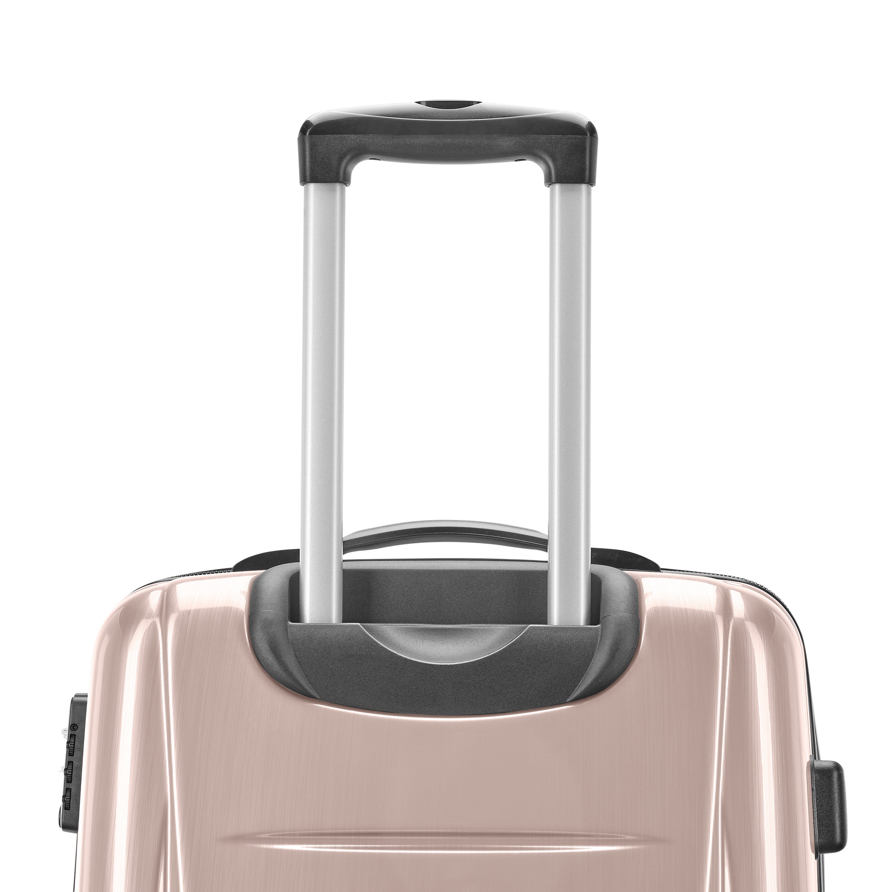 Transport your travel essentials effortlessly and stylishly. This extremely lightweight and durable spinner features 100 percentage polycarbonate construction with sharp molded details. Made to absorb impact by flexing while under stress then popping back to its original shape, eliminating dents and dings while protecting its contents. An elegant, brushed pattern hides any potential scratches or scuffs from your journeys. The fully-lined interior has cross-straps, a privacy curtain with its own zippered organizational pockets. TSA approved combination lock for security and peace of mind.