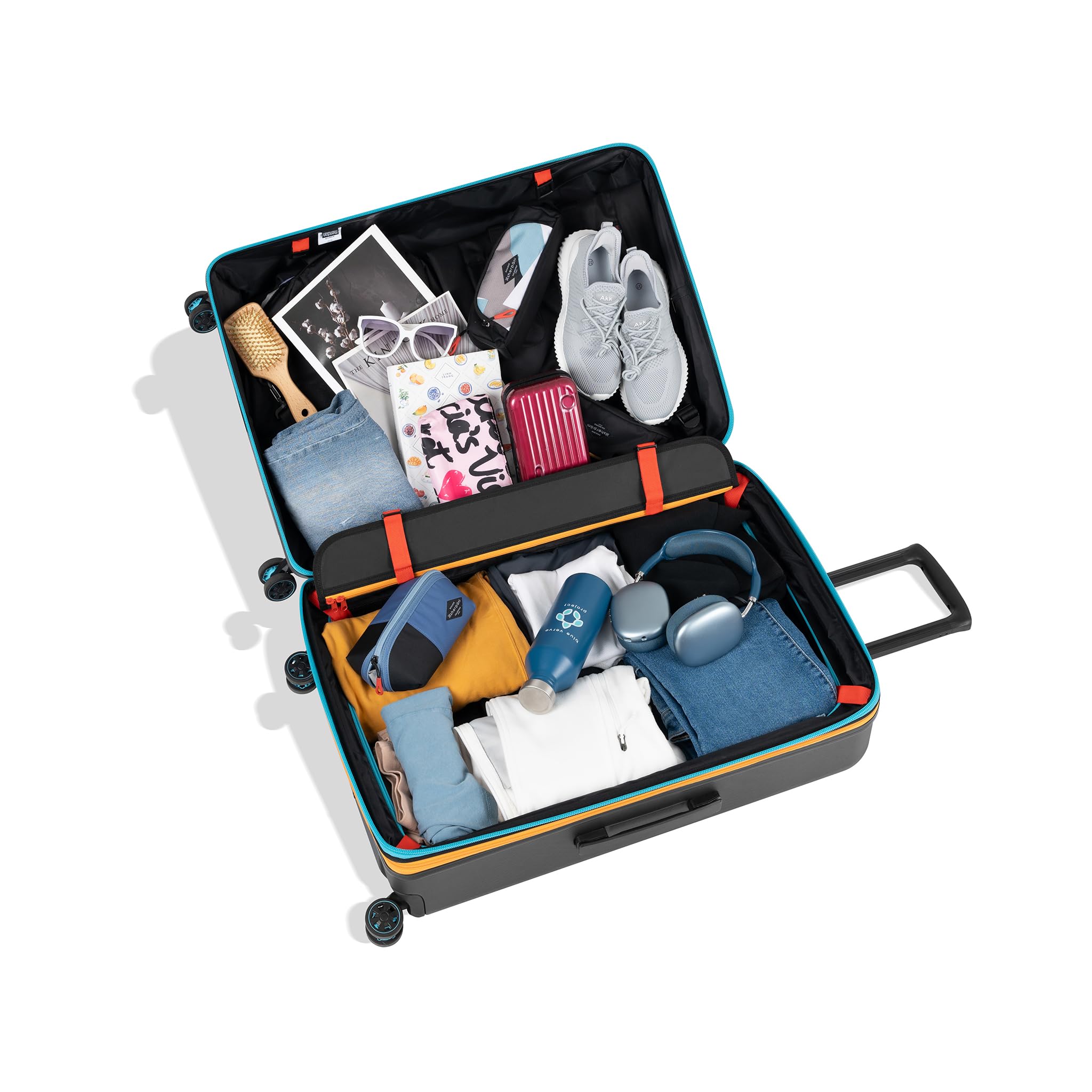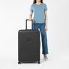 Don't want to leave anything behind? The spacious Meridian will hold it all with its 97-liter capacity! Now available in this larger size for your checked luggage needs, our signature hard shell suitcase is every traveler's dream. Features include an uncrushable exterior, chip-proof color, retractable luggage handle, two-inch expansion zipper, TSA-approved locking zippers, and four 360-degree spinner wheels for smooth rolling.