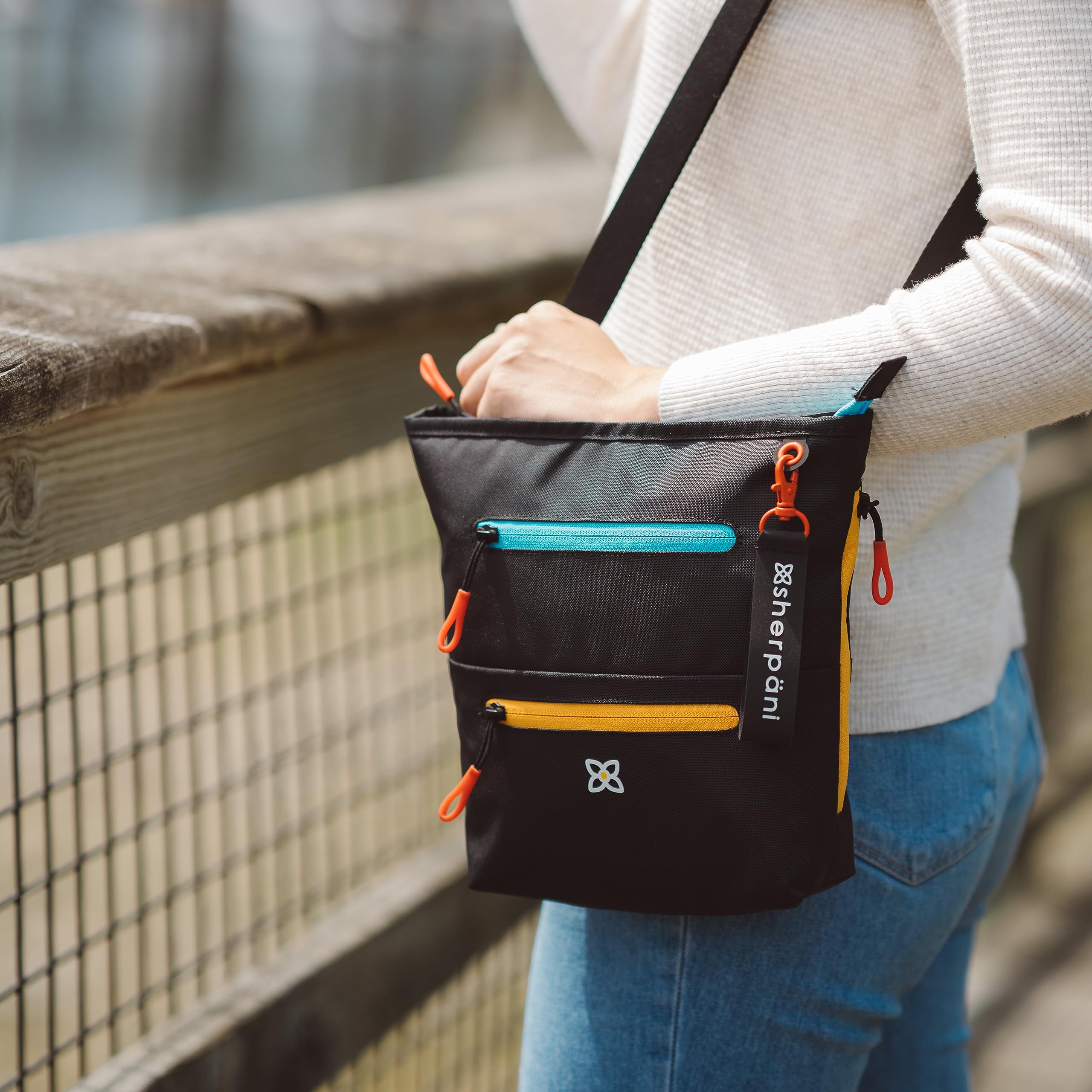 This mighty, medium size crossbody is ready for your most active days. The Sadieâ??s six pockets help keep your phone, keys, wallet, and other daily essentials organized. Made from 100% recycled fabric, the Sadie defines feel-good functionality.