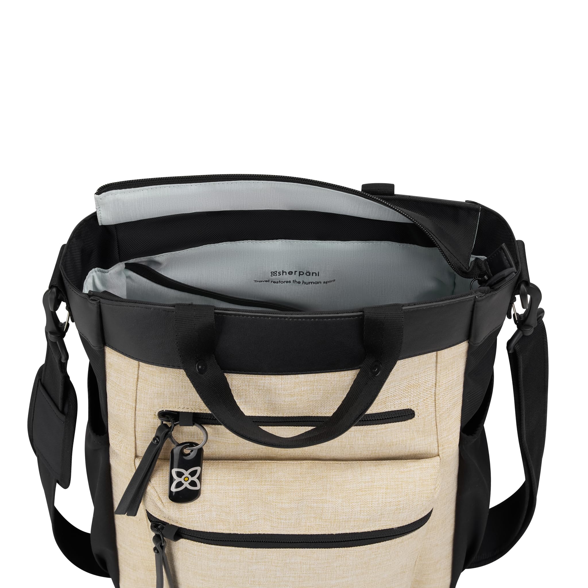 Carry the Soleil AT as a tote, a crossbody, or a backpack. The 14â??â?? padded laptop sleeve and six innovative anti-theft features make the Soleil AT the perfect work and travel companion. The tasteful integration of anti-theft protection, paired with timeless colors and a classic silhouette, makes the Soleil AT one of the best-selling anti-theft bags available today.
