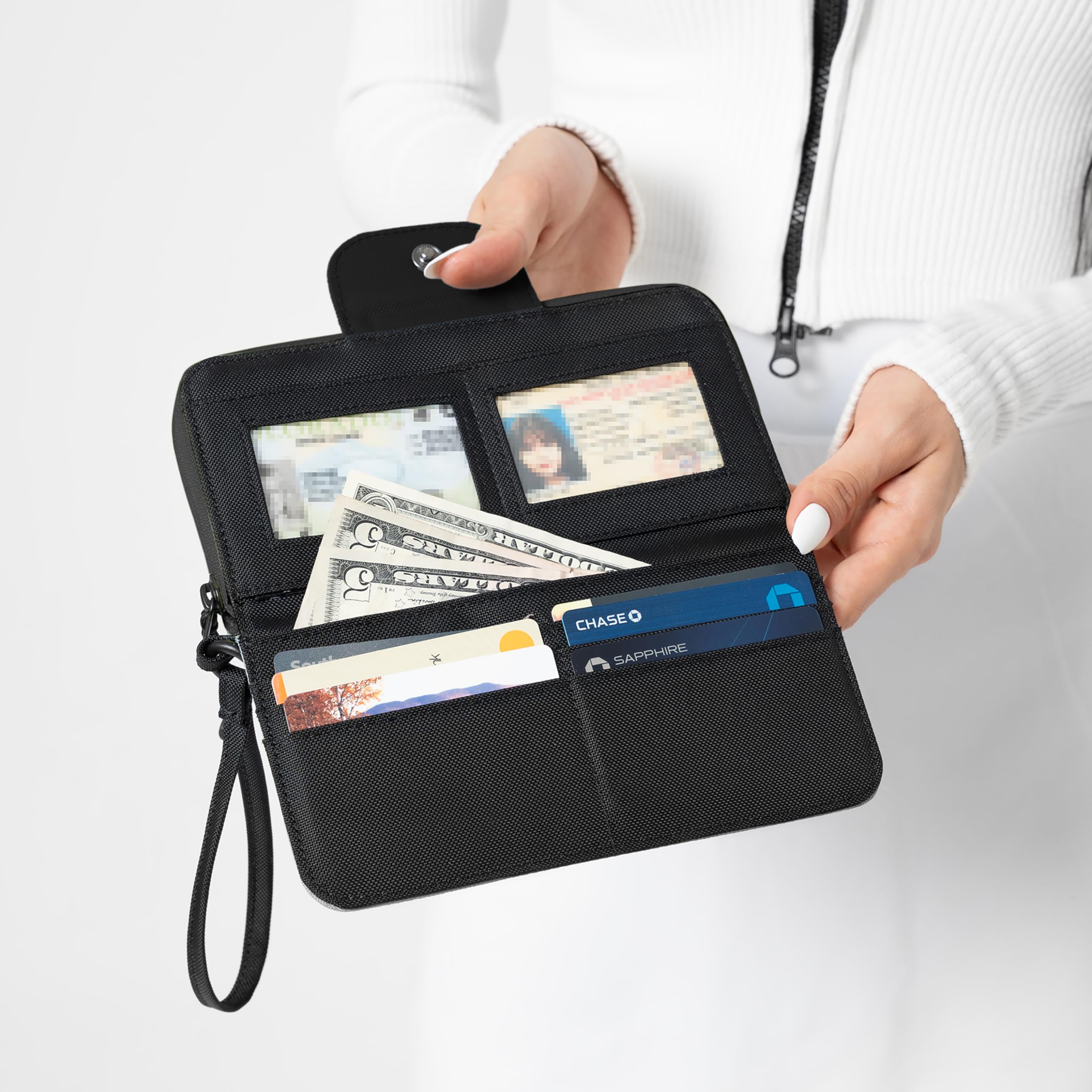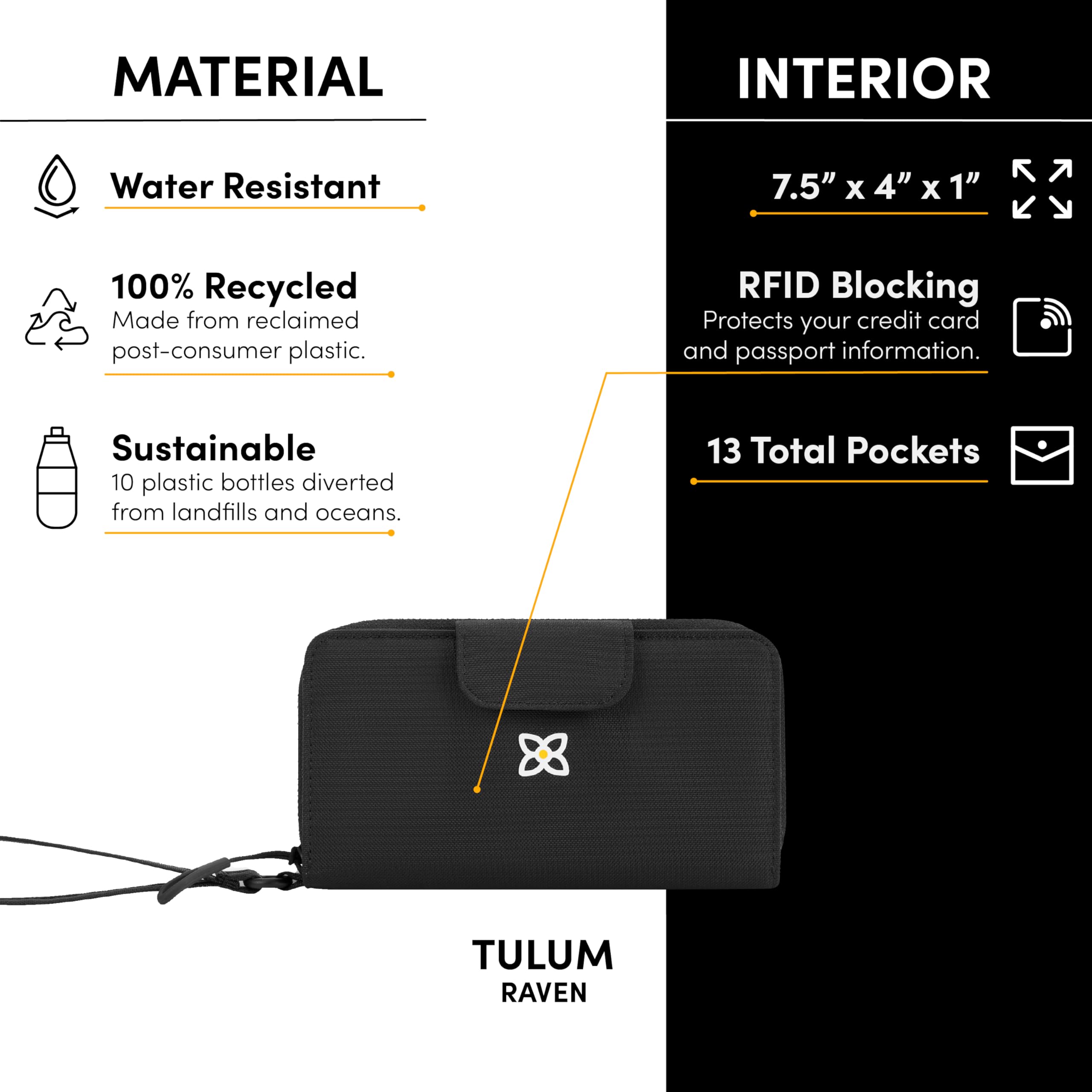Think of this as your keep-forever kind of wallet! This long wallet has six card slots, a currency pocket, and two clear ID card slots. Plus, it features a wristlet strap. The Tulum makes a great travel wallet with its RFID protection to guard against data skimming.