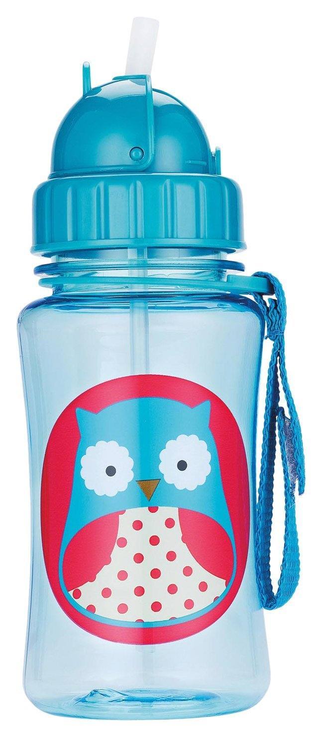 Color:Owl A major milestone for toddler is when she isready to move on from sippy cups. The Zoo Straw Bottle helps ease thistransition by giving little ones a "big-kid cup" with the protection of aflip-top lid. Dishwasher-safe; also comes with an extra straw. Featuressignature Zoo characters Straw flips down to seal closed and stay clean Handygrab-strap attaches to anything Extra straw included Dishwasher-safe Holds 12oz.BPA-free, Phthalate-free, and PVC-free Size (inches): 2.75l x 7h BrandStory By Skip Hop