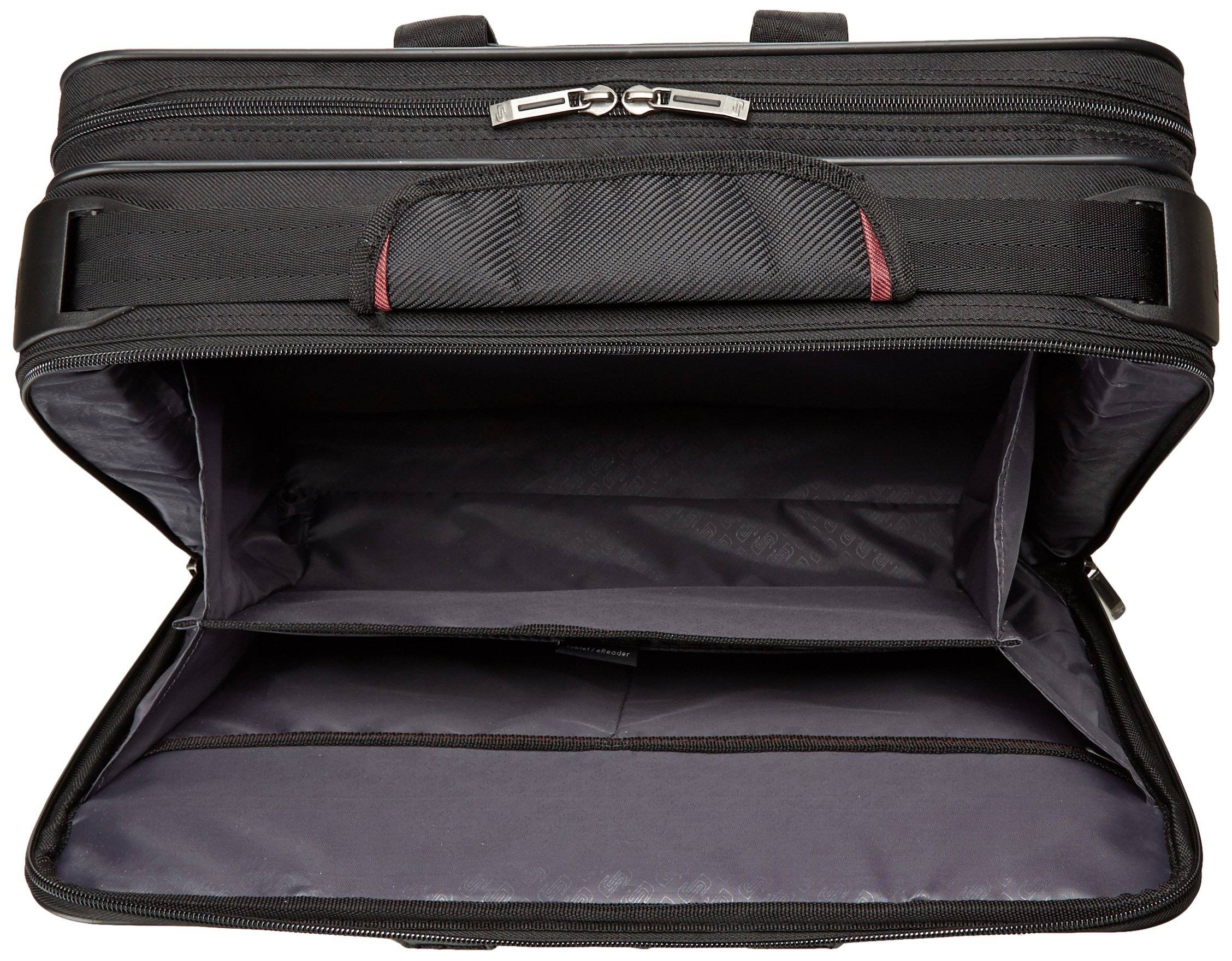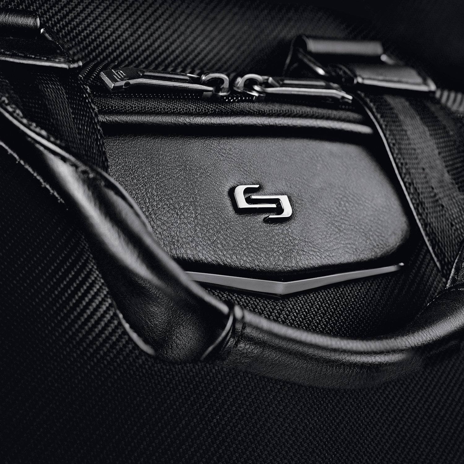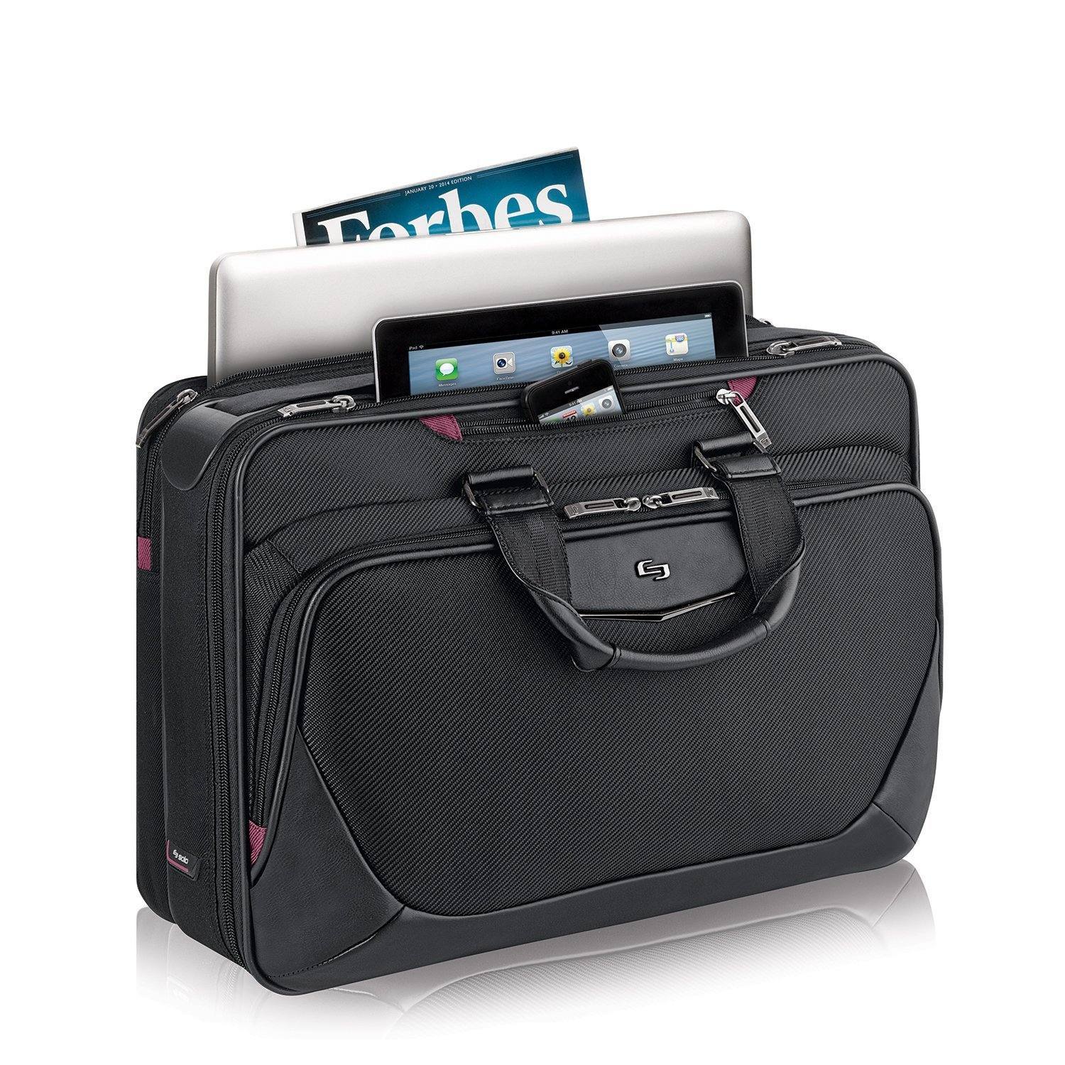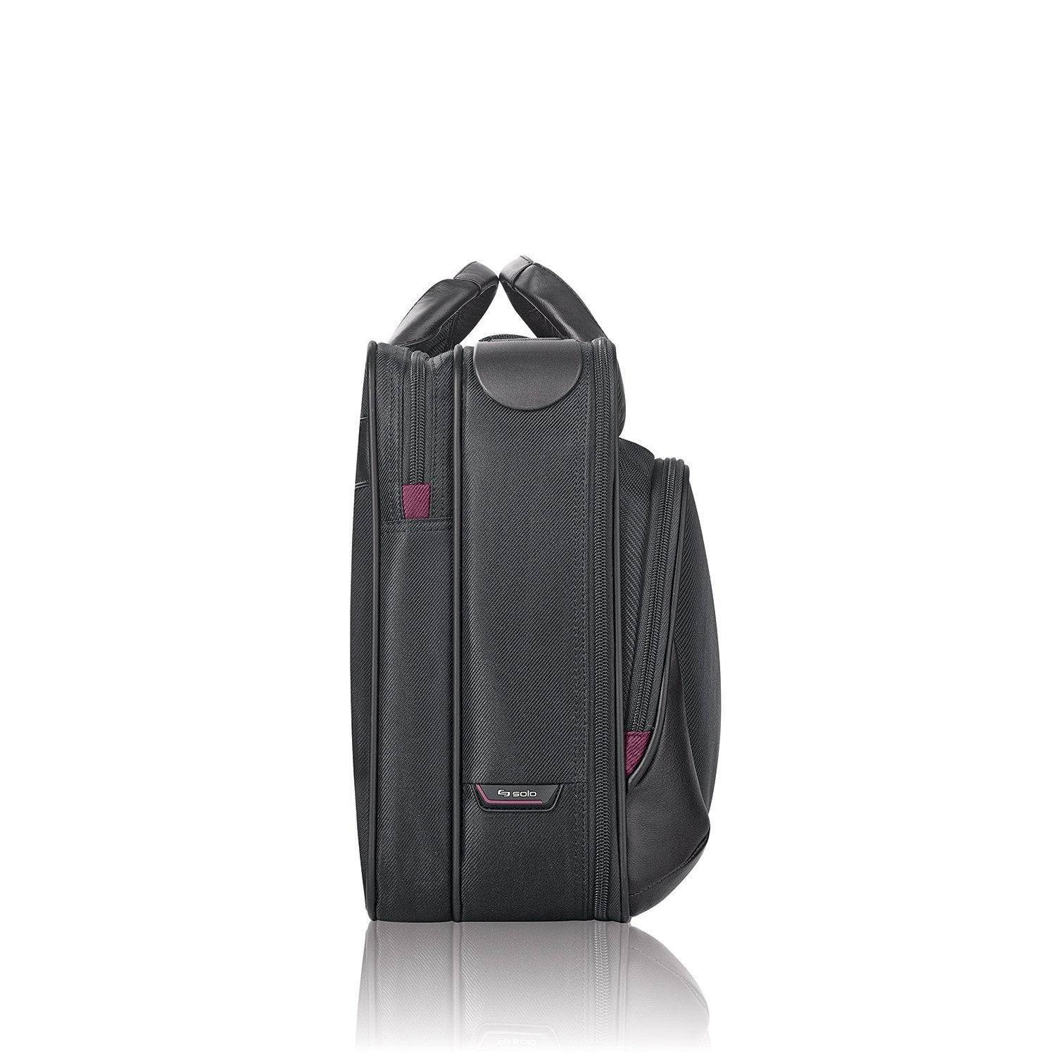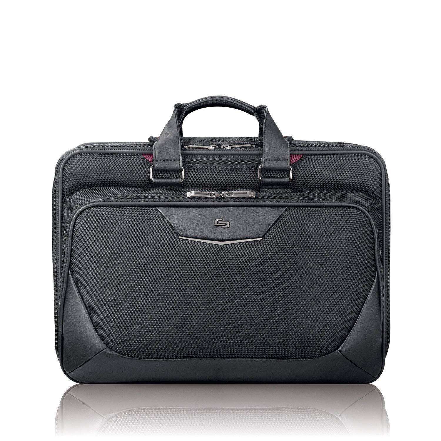 This Solo briefcase features Smart Strap shoulder strap that automaticallyretract into case frame and has a padded compartment that protects laptops upto 17.3. The quick access pocket, front zippered pocket and zip-downorganizer section make it easy to stay organized on high priority items. RearRide Along feature for consolidated travel.