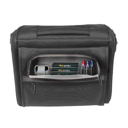 Rolling Case Traveler is perfect for anyone always on the go. The Travelerfeatures a removable 15.6" laptop case with a file section and zip-downorganizer. The full-featured upright contains a suitor and features a frontaccessory pocket for small items. This polyester rolling traveler is alsoequipped with an extra-long telescoping handle system as well as inline skatewheels with corner guard protection.