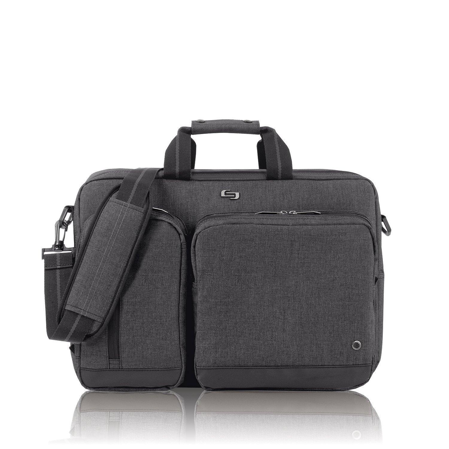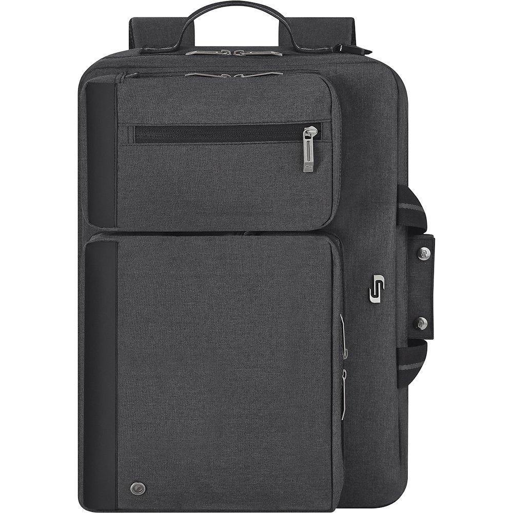 Style and quality demanded by experienced professionals. Carry Solo and enjoythe confidence that comes from carrying a case with the performance. ThePadded compartment protects laptops up to 15.6". The Briefcase transforms intobackpack. Features: Front zip-down organizer section Carry handlesRemovable/Adjustable shoulder strap Padded backpack straps for added comfortBack strap storage Polyester body Front zippered pockets Materials: Polyester.