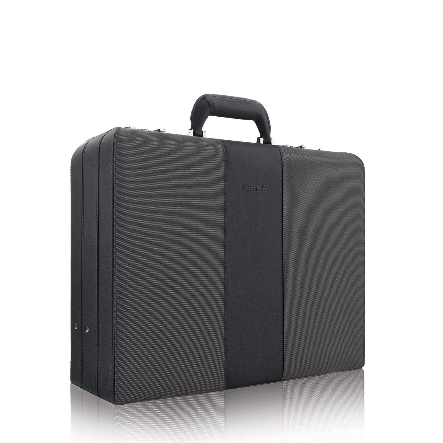 Design mobile bags and cases that better meet the needs and lifestyles ofmobile professionals like you. That's the SOLO mission, and it informs everyaspect of our business. The SOLO Classic Collection features an understatedsophisticated style for career focused men and women. The SOLO ClassicCollection Laptop Attache offers storage and security for your laptop whereveryou travel. It has a padded compartment that holds up to a 16 inch laptop aswell as removable padded spacers and a Velcro strap to protect your laptop.Dedicated file and organizer sections keep your papers and other accessoriesneat and organized. There is a sturdy carrying handle which allows for easyportability, and dual combination locks keep your contents secure. Thelightweight vinyl and polyester construction is easy to keep clean anddurable. SOLO offers new freedom to create your own work space, any time andany place. Get the satisfaction, comfort and confidence that come with knowingthat you've found the "perfect bag" for you.