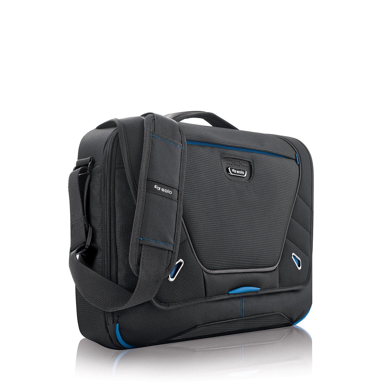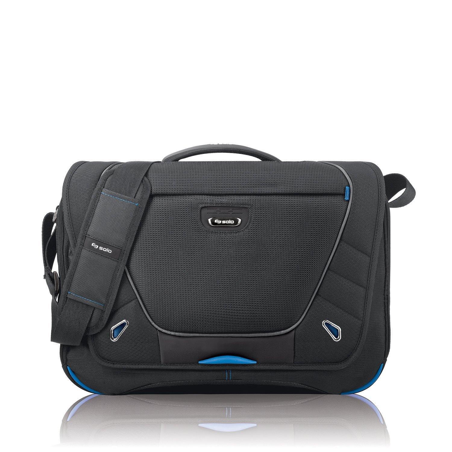 You are ahead of the curve - in the technology you use and in how you take itwith you. The Tech collection is designed to give you effortless access toyour technology as you move through your day. Upgrade - to the Tech collectionfrom SOLO. The SOLO Tech Collection Laptop Messenger has a padded pocket thatprotects up to a 16 inch laptop also has a dedicated interior pocket designedto specifically hold an iPad or e-Reader. The Ride Along strap on back of caseallows you to slip over telescoping handle system for consolidated travel andSOLO's ICtrl strap manager safely holds shoulder strap when not in use andprevents dangling or strap getting caught. A quick access pocket provides fastaccess to an MP3 player, smartphone or loose change. The dual magnetic frontclosure provides additional safety and security. The adjustable, removableshoulder strap provides ease of travel, and a cushioned carry handle lightensyour load. The perfect business bag for the pro on the go! No matter yourstyle and need, rely on SOLO.
