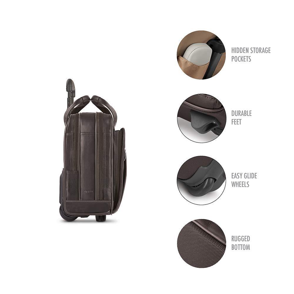 The Classic 15.6" Leather CheckFast„ Rolling Case is part of the ClassicCollection from Solo. Streamline your professional baggage with the SoloClassic 15.6" Leather CheckFast„ Rolling Case. Padded removable computersleeve accommodates up to a 15.6" laptop. CheckFast„ sleeve design allowsquick passage through security checkpoints. Durable and attractive leatherconstruction. Telescoping handle system for easy maneuvering. Two padded carryhandles for easy grab and go. Removable, adjustable shoulder strap for over-the-shoulder wear. Front zip-down organizer section. Front zippered pocket foraccessories. Rear section unzips to reveal two accessory pockets. File pocketkeeps documents neat. Two wheels at rear and durable feet at front. Imported.Measurements: Bottom Width: 17 in Middle Width: 17 in Top Width: 17 in Depth:6 in Height: 14 in Strap Length: 60 in Strap Drop: 30 in Handle Length: 16 inHandle Drop: 8 in Weight: 6 lbs 14 oz This product may have a manufacturer'swarranty. Please visit the manufacturer's website or contact us atwarranty@support.zappos.com for full manufacturer warranty details.