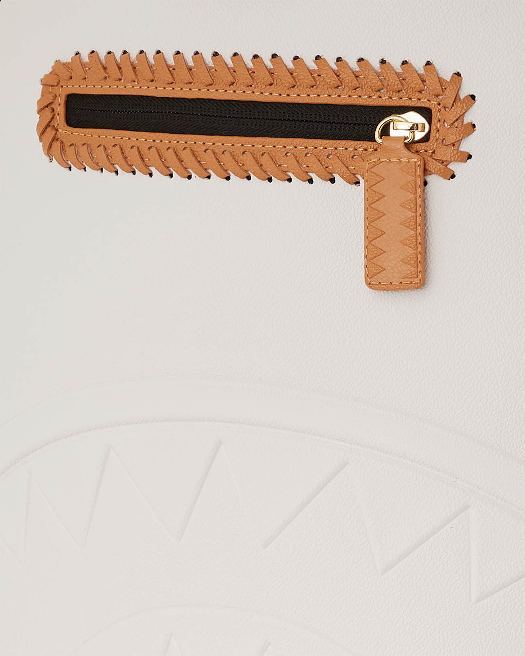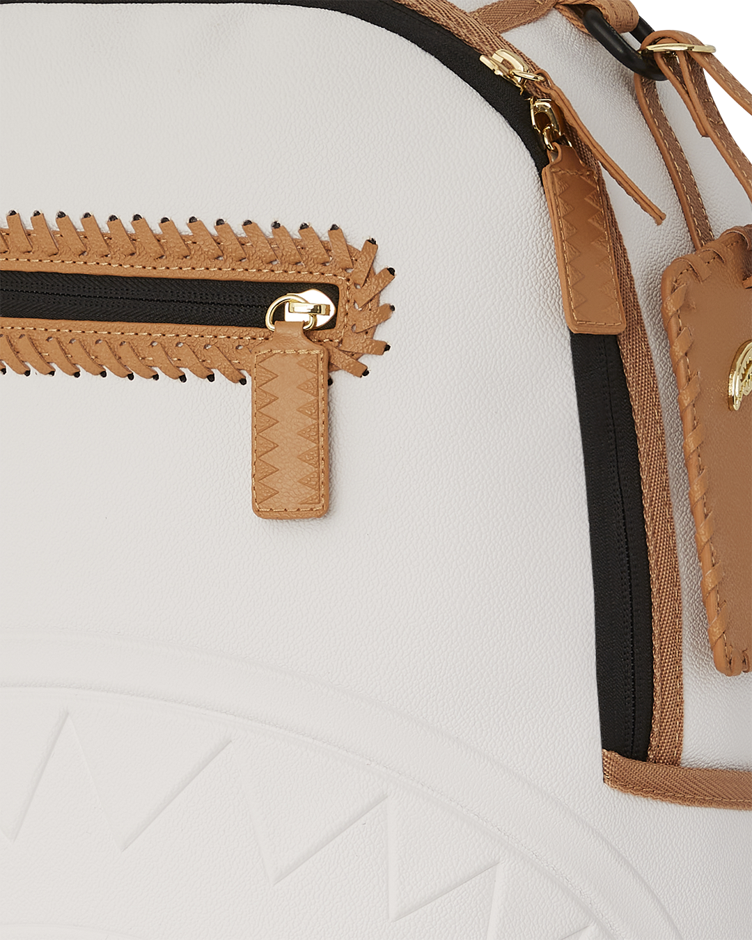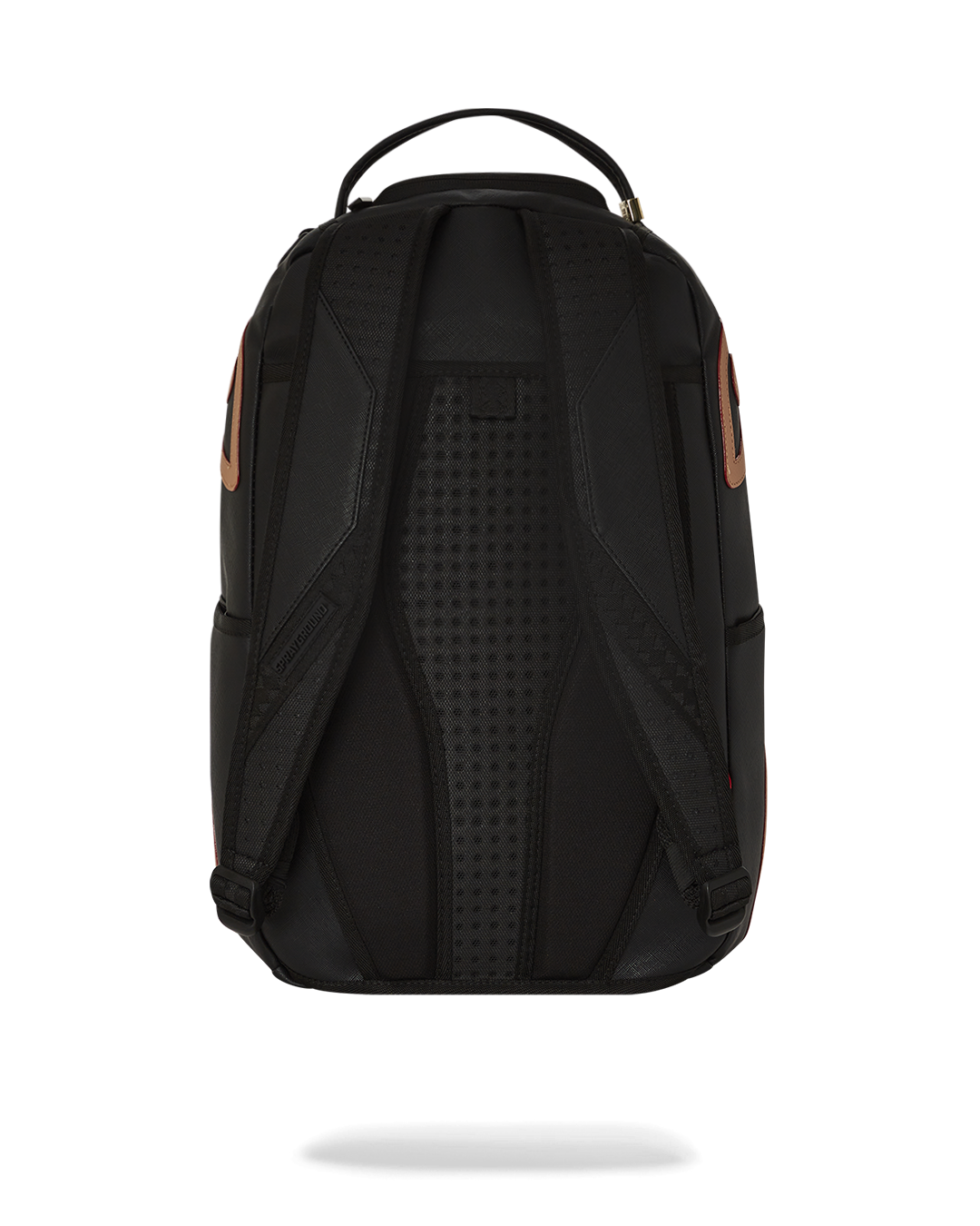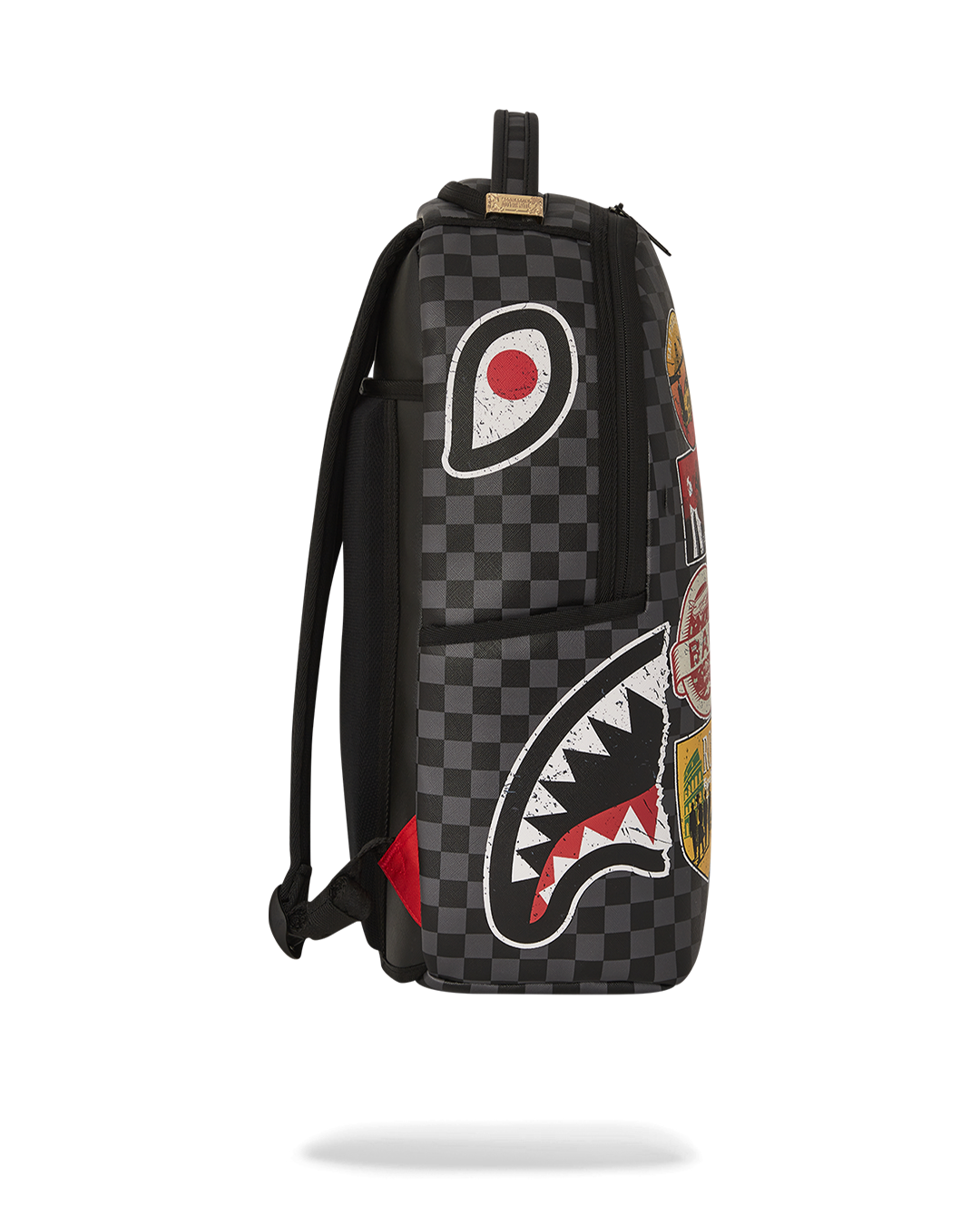 • Gold zippers with metal hardware. Metal "Sprayground Authentic" badge.