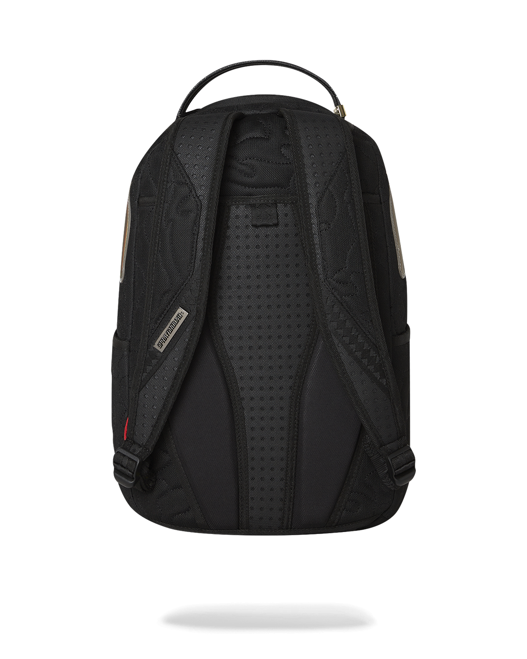• Gold zippers with metal hardware. Metal "Sprayground Authentic" badge.