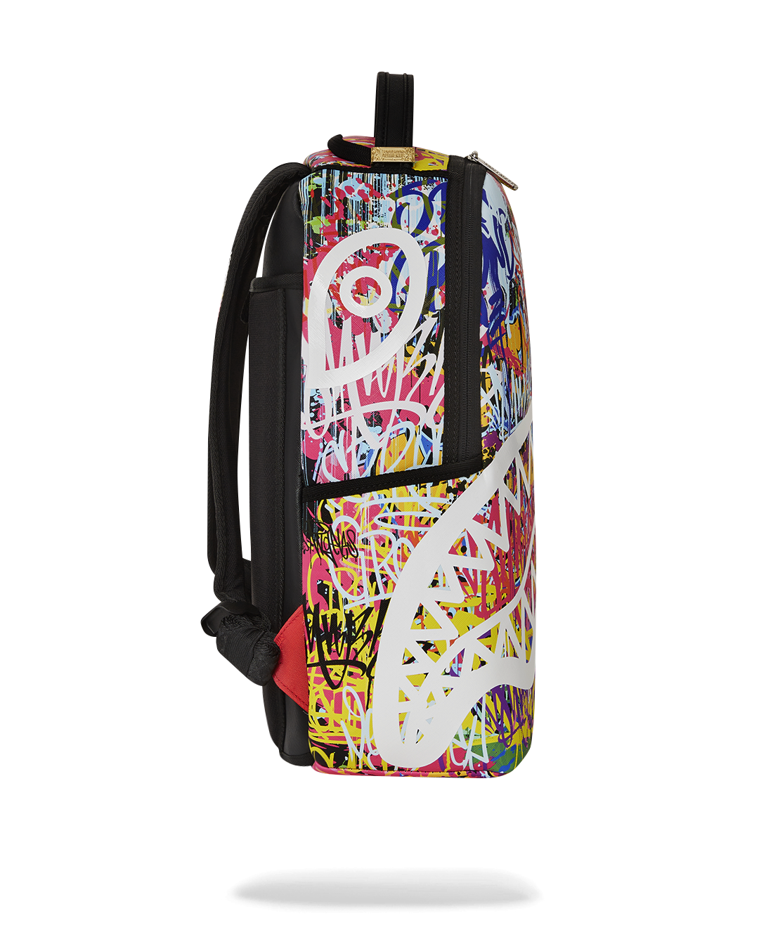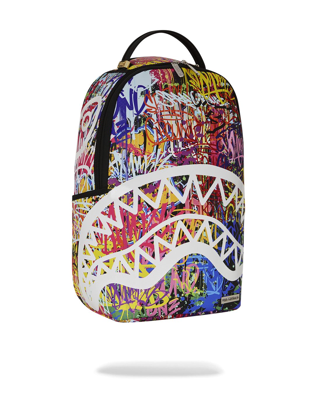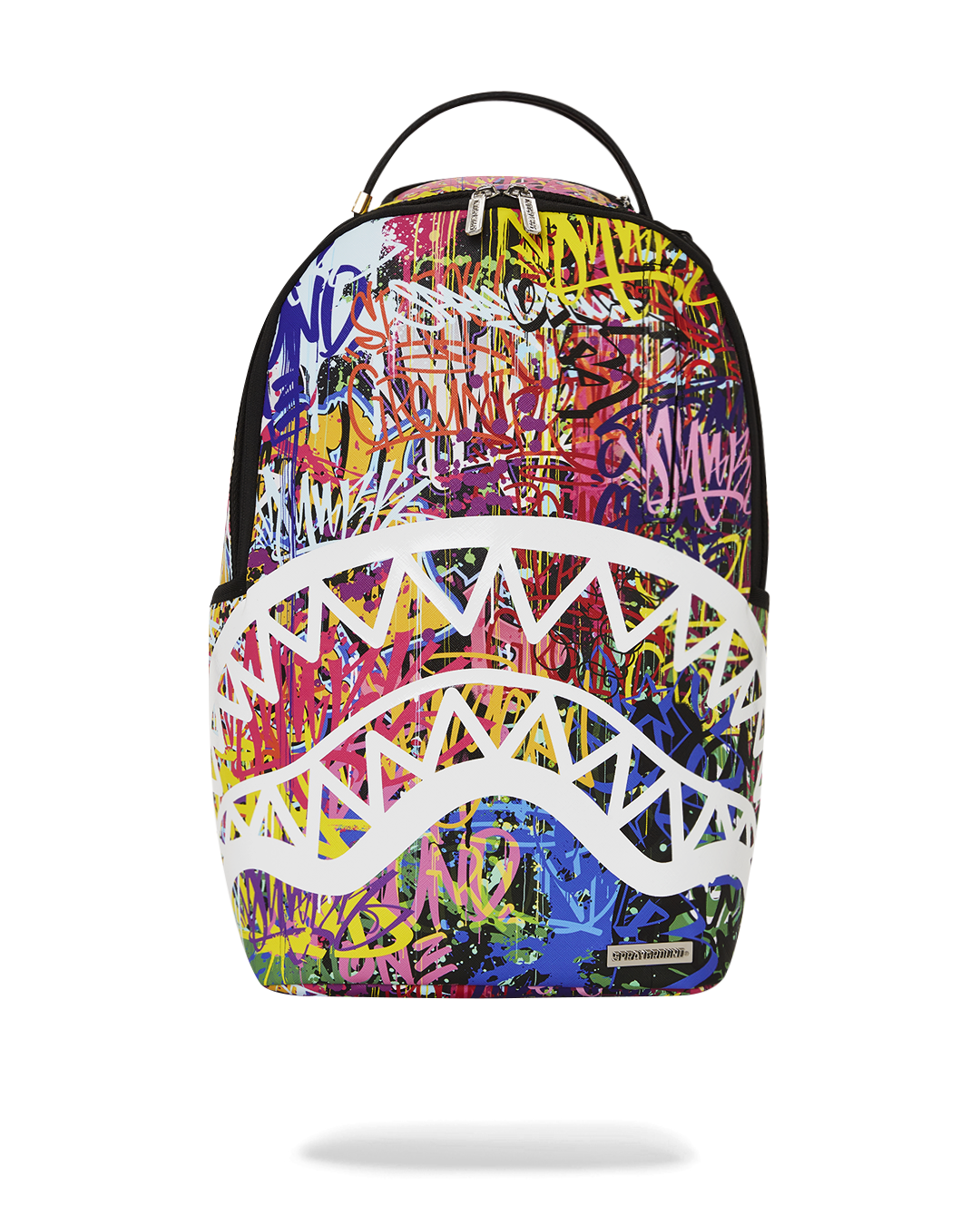 • Gold zippers with metal hardware. Metal "Sprayground Authentic" badge.