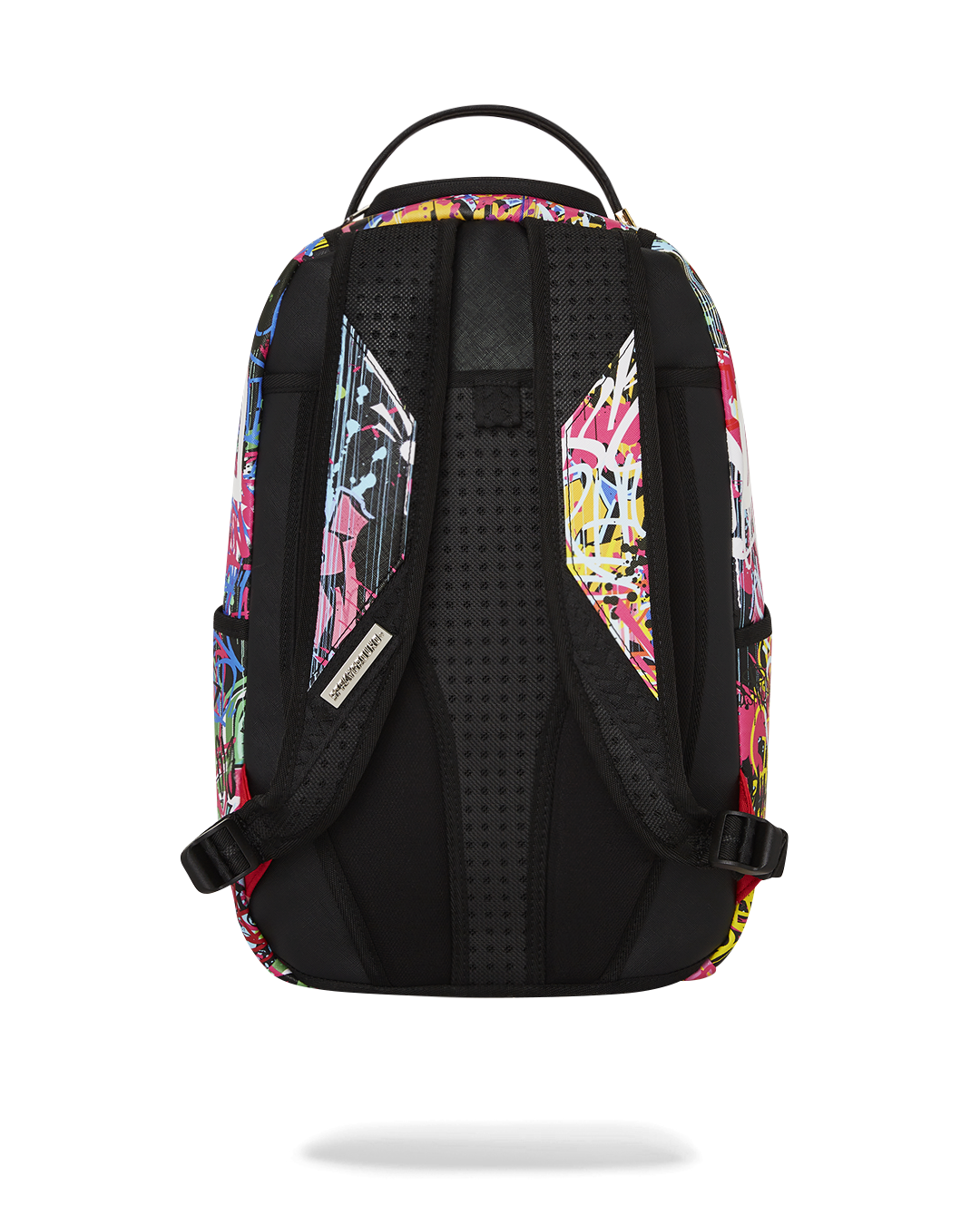 ALL BAGS ARE LIMITED EDITION & NEVER PRODUCED AGAIN. Made with Durable Faux Leather water-resistant fabric Spraygrounds art is meant to tell a story, through inspiration, pop culture, details, color, and thought-provoking concepts that push the limit in design and fashion. Durability, Strength, and Longevity are the foundation of Quality for Sprayground. A bag is meant to be thrown and beat up through the normal wear and tear of people's daily adventures. Functional compartments for todays youthful tech kid with slots for headphones, sunglasses, laptops, tablets and easy organization and mobility with ergonomic strap support for easy transport.
