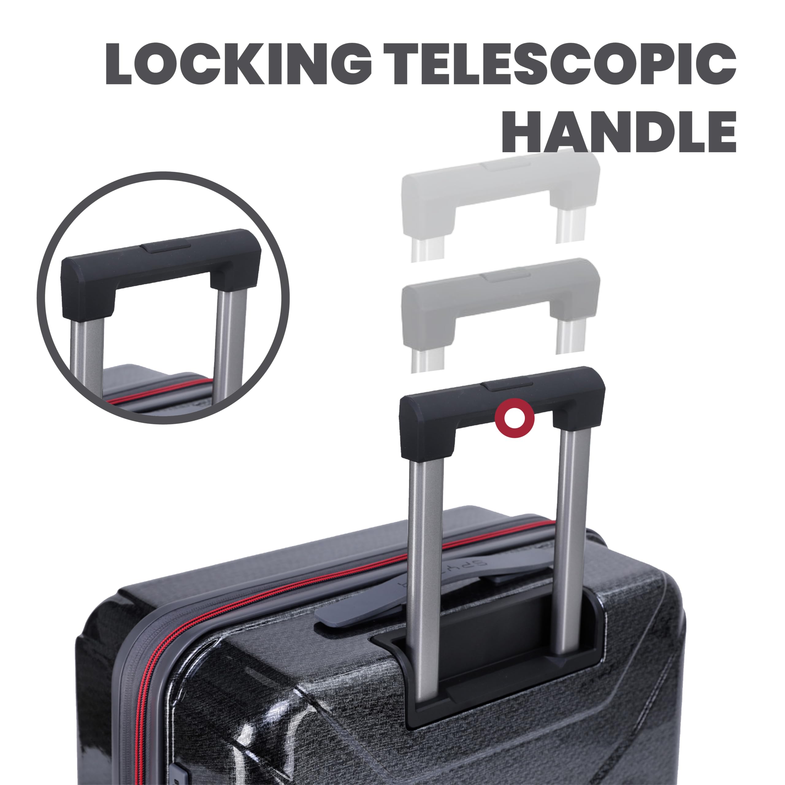 The Spyder Traverse Hardside Luggage Series is your ultimate travel companion, offering versatility and reliability for your journeys. Available in 22" carry-on, 25", and 29" sizes, as well as a 3-piece set there's an option for every traveler. Enjoy a smooth and quiet ride with dual 360 spinner wheels, ensuring maximum durability. Need extra space? Our suitcase features a full 2.5 expansion for additional packing capacity. The multi-stage telescopic handle system with a push-button mechanism is designed for comfort and easy wheeling. Stay organized with our roomy interior, offering two packing compartments equipped with compression straps, a mesh divider, and multiple accessory pockets for added organization. Lift your packed case with ease using the two carry handles, providing maximum convenience. Rest assured knowing your belongings are secure with our TSA-approved combination lock, providing easy access for TSA agents when required. With a 5-year limited warranty, travel confidently with the Spyder Traverse Hardside Luggage Series. Choose Spyder Traverse for your next journey and travel in style, comfort, and security.