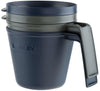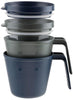 4-piece nesting system [2 mugs + 2 drink-thru lids] saves space when packingor storing.Mugs + lids snap together and nest infinitely to accommodate largegroups.Volume markings let mug double as measuring cup.Made of eCycle, ourrecycled and recyclable plastic.Dishwasher safe + microwave safe.BPAFree.Lifetime Warranty.