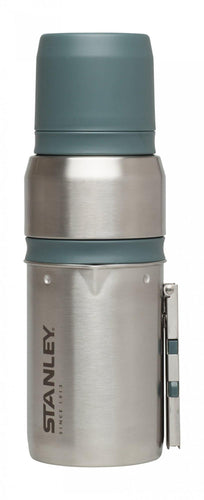 Stanley mountain 17oz vacuum coffee system is an integrated solution that brings the comforts of home to the camp. Vacuum insulated bottle keeps drinks hot 15 hours, cold 13 hours or iced 50 hours. 18/8 stainless steel won't rust, naturally BPA-free. Integrated pot and press brews a bottle's worth of coffee then nests to save space. Lid separates into two cups for sharing. Dry storage stopper holds a bottle's worth of coffee grounds.