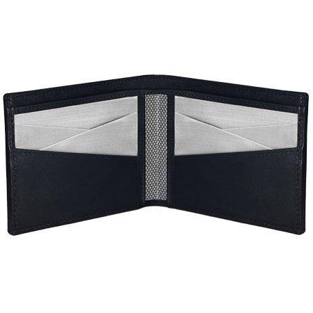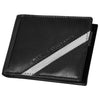 A sophisticated blend of premium italian black leather and stainless steel is paired with a semi-reflective, abrasion resistant performance fabric called ballistic nylon, guaranteed to protect the wallet from wear.
