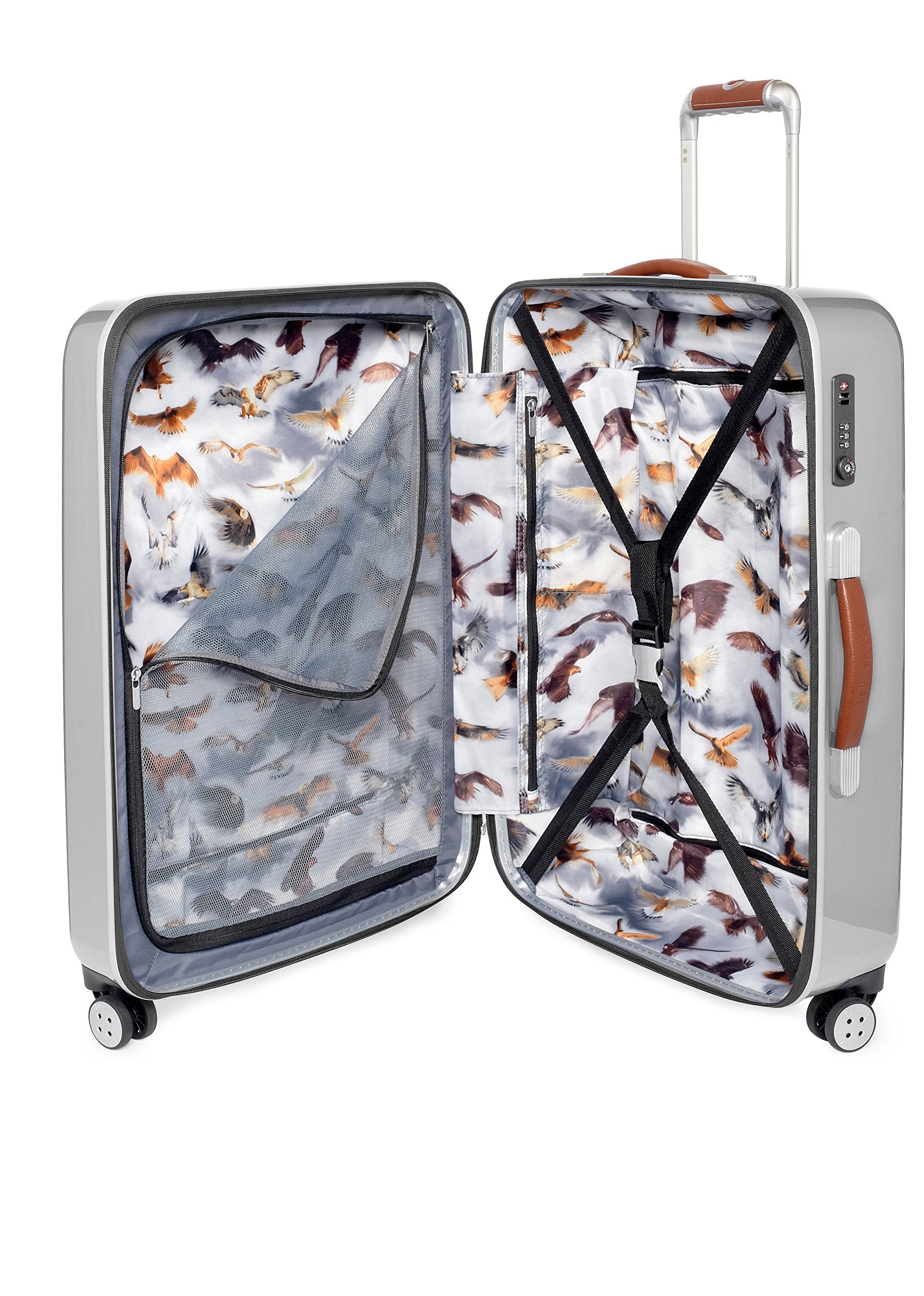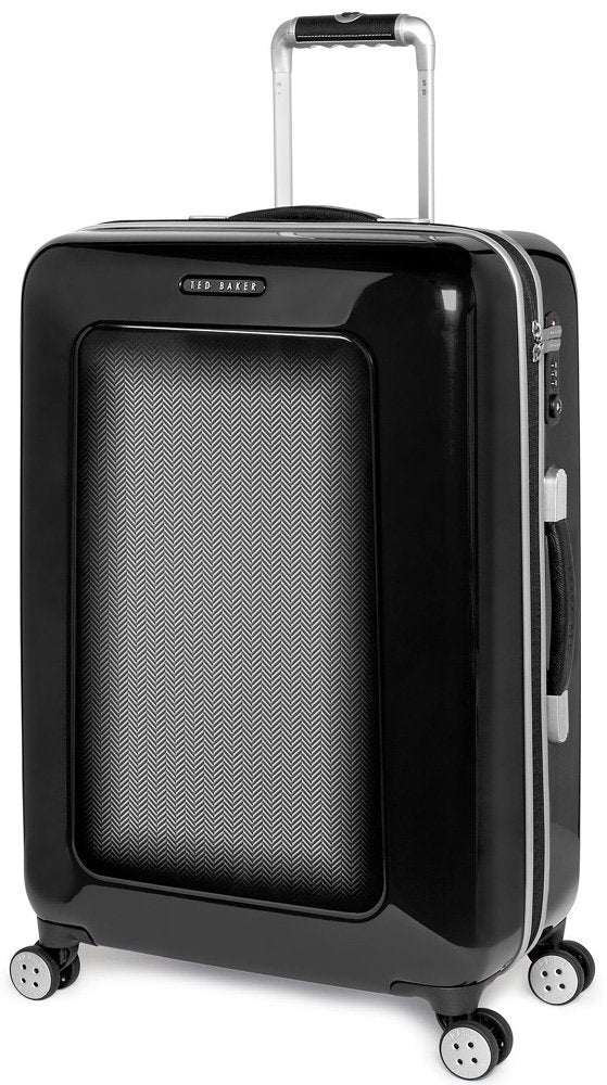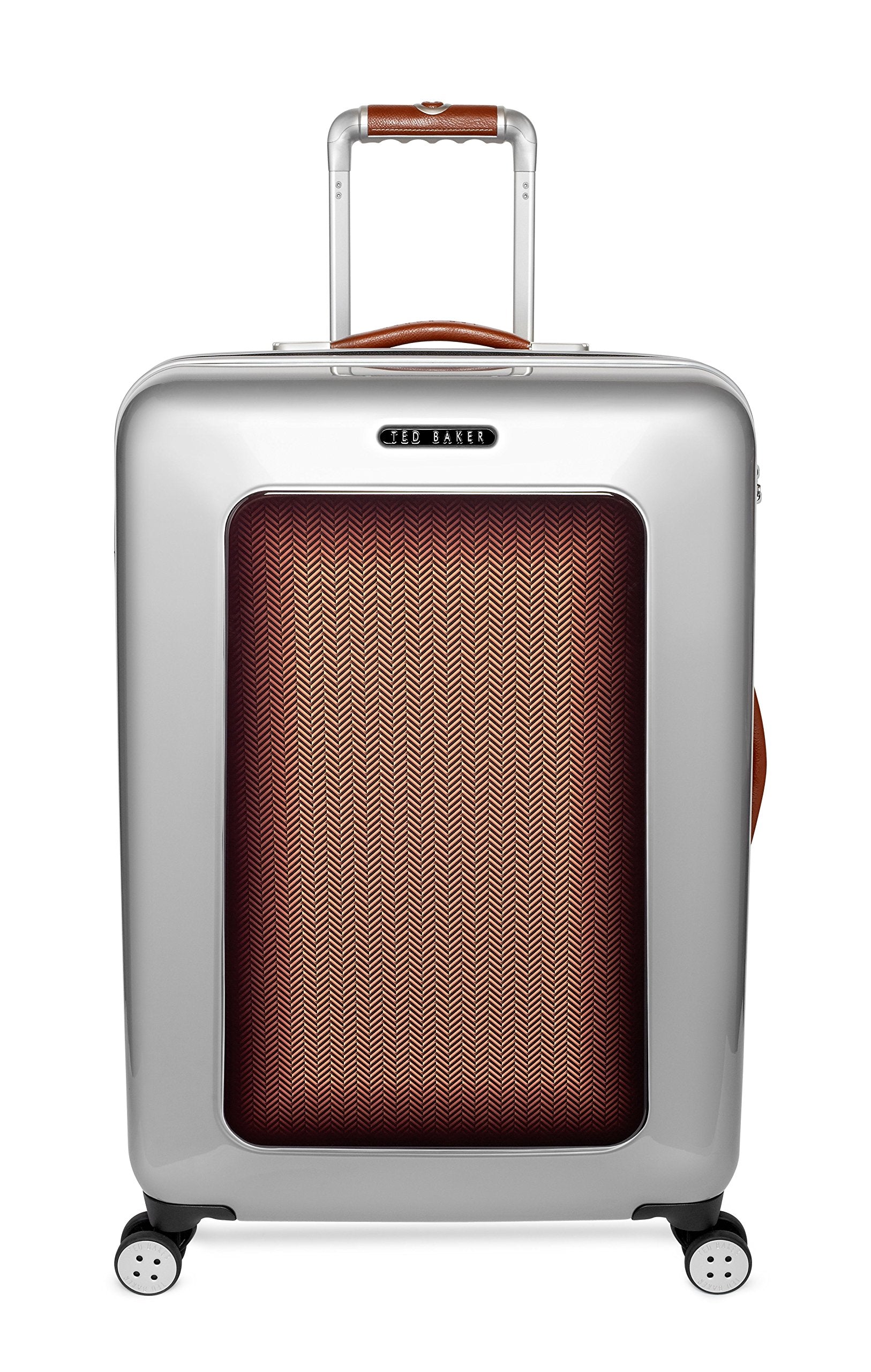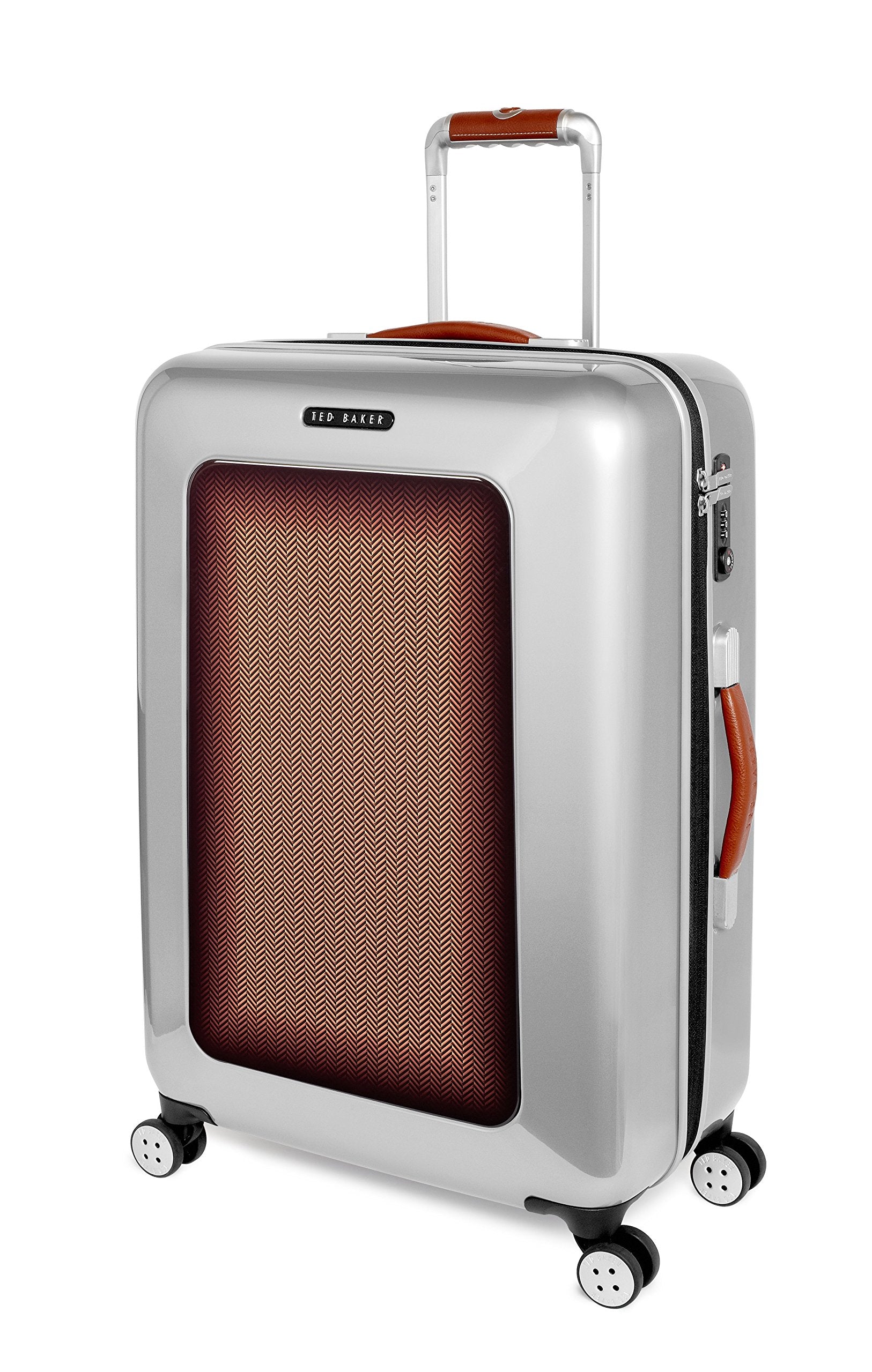 High Definition Ted Baker Take Flight Collection: Bronze Herringbone Each iconic high-definition design has been lovingly hand-applied, using 'first of its kind' water transfer technology ensuring maximum life span and 'best in class' quality. Unique trolley system made from strong, lightweight aircraft grade aluminium. Faux leather ergonomic 'T' branded handgrip.