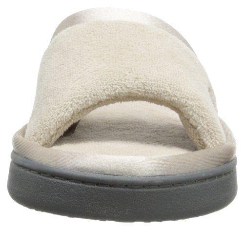 isotoner Women's Microterry Slide Slipper with Satin Trim, Stone, 8.5/9