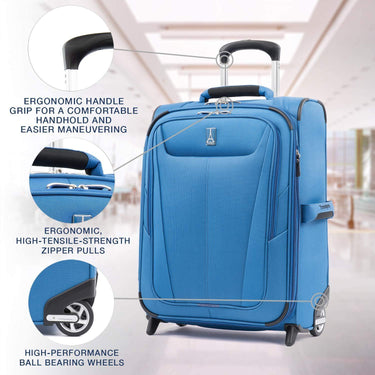 This carry-on soft-sided spinner is so light, it flies! One of our lightest wheeled carry-on suitcases, the Maxlite 5 29" Expandable Spinner is designed for ultimate comfort and mobility, featuring a 2-position adjustable PowerScope Lite handle with patented Contour Grip and 4-wheel 360 rotating spinners that glide effortlessly. Enjoy packing convenience with two quick-access, exterior front pockets, full-length interior lid pocket, side accessory pocket and adjustable hold-down straps, while the high-tensile-strength expandable zipper gives you maximum packing flexibility.