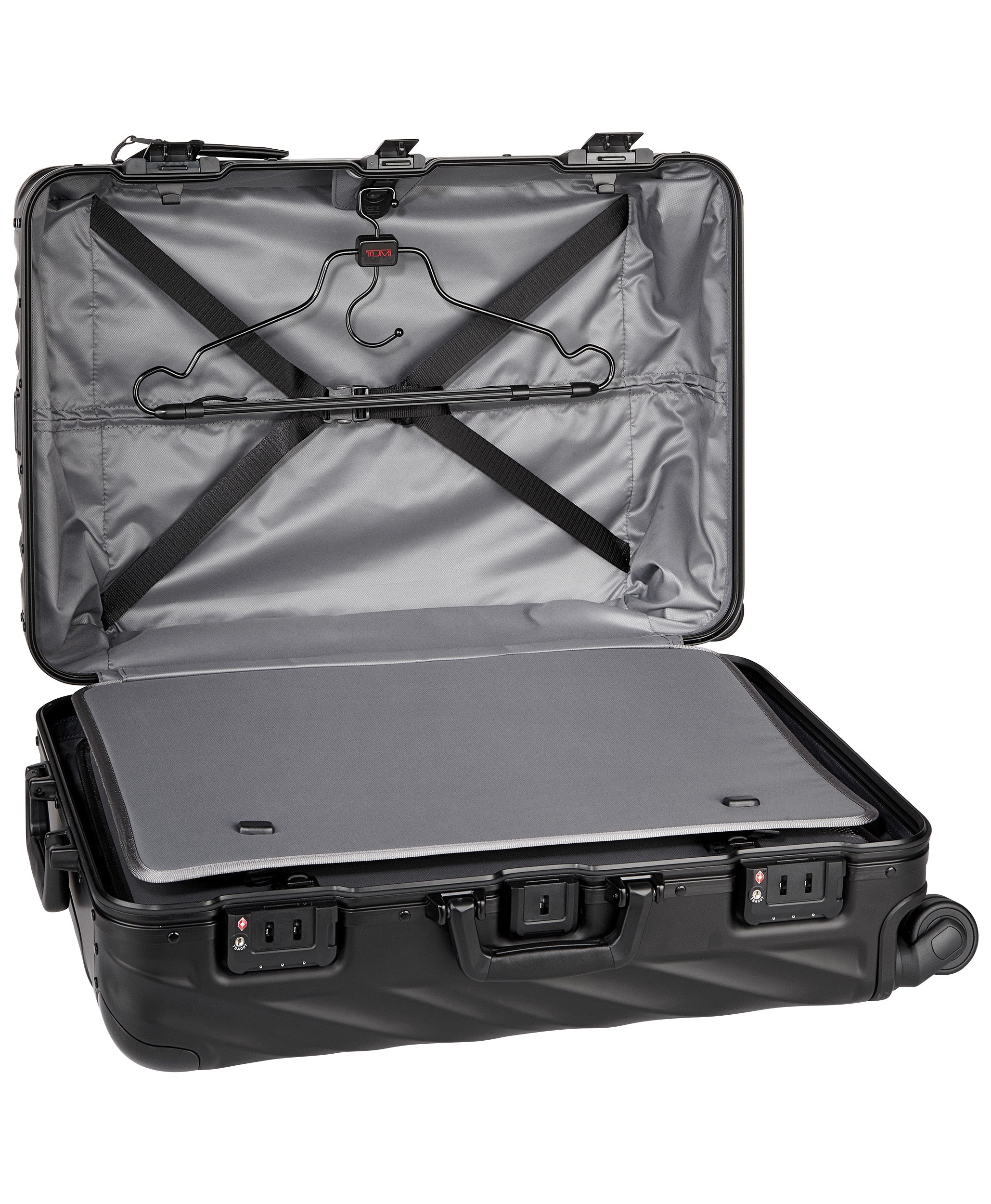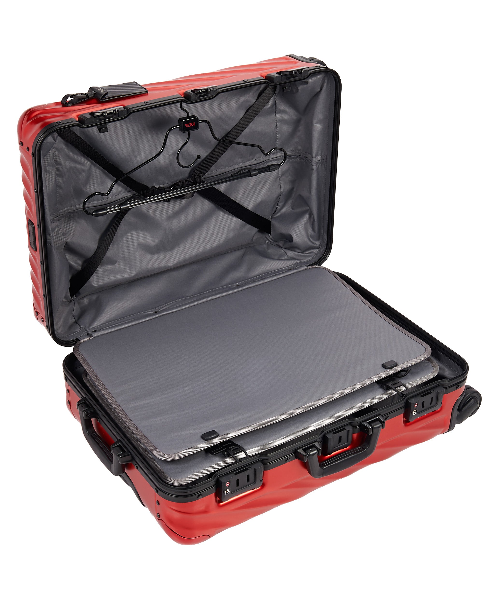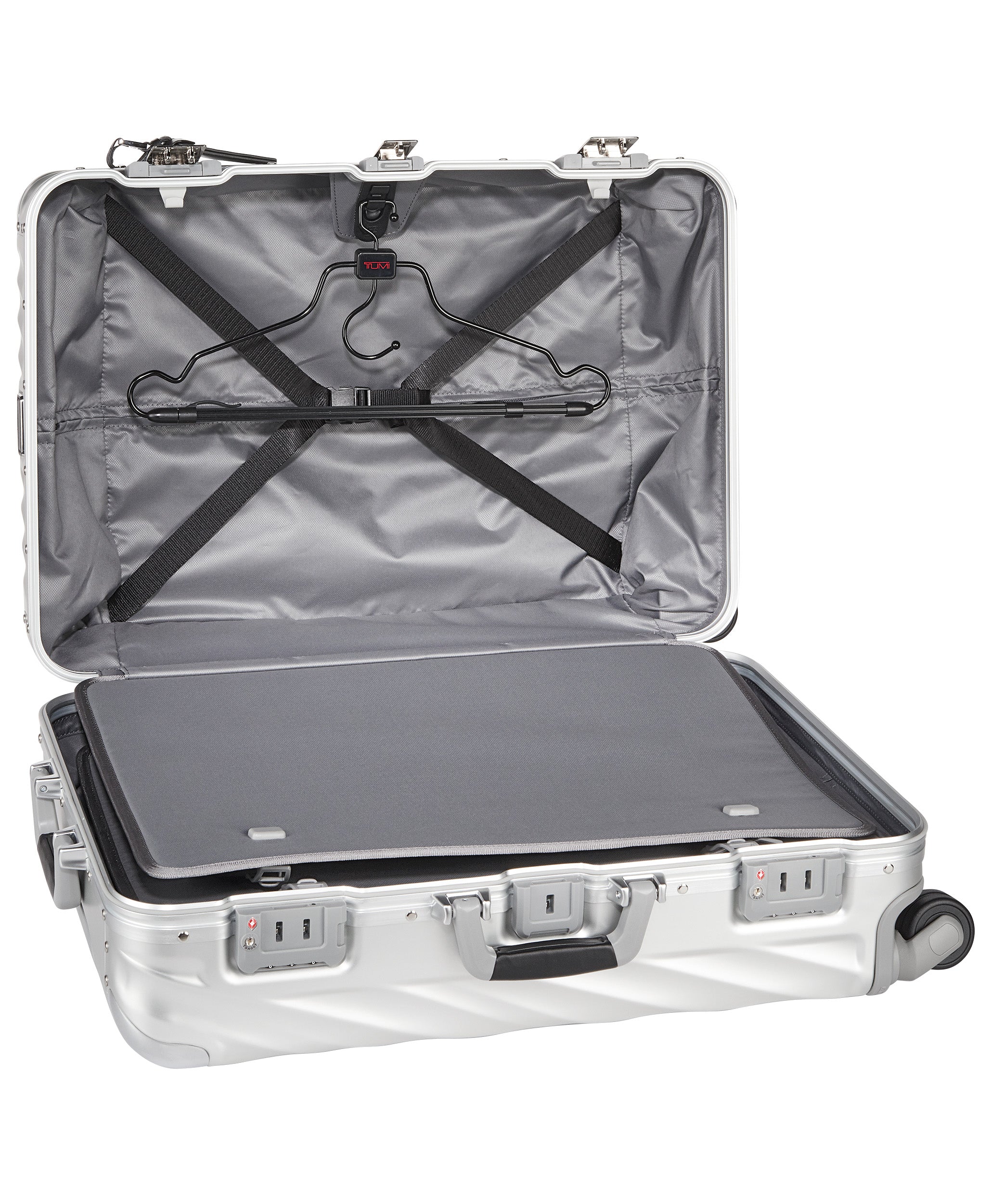 The farther you go, the more stamps on your passport, the better your story. Your 19 Degree luggage is part of that story. Exceptionally striking up close or from a distance, this super durable case boasts a modern silhouette with fluid looking, strategically contoured angles. Perfectly sized for quick trips and long weekends. Note that hanger shown is not included with this item it may be purchased separately 0052. As with all metals, wear and tear, including nicks, dings and slight denting, is to be anticipated and carried with pride for a journey well-traveled. To further add to the unique characteristics of your travel case, weve packed a variety of vintage-inspired decorative stickers inside your case.pspan style font-size: small strongUpon delivery, this item will require a signature.nbsp strongspanp