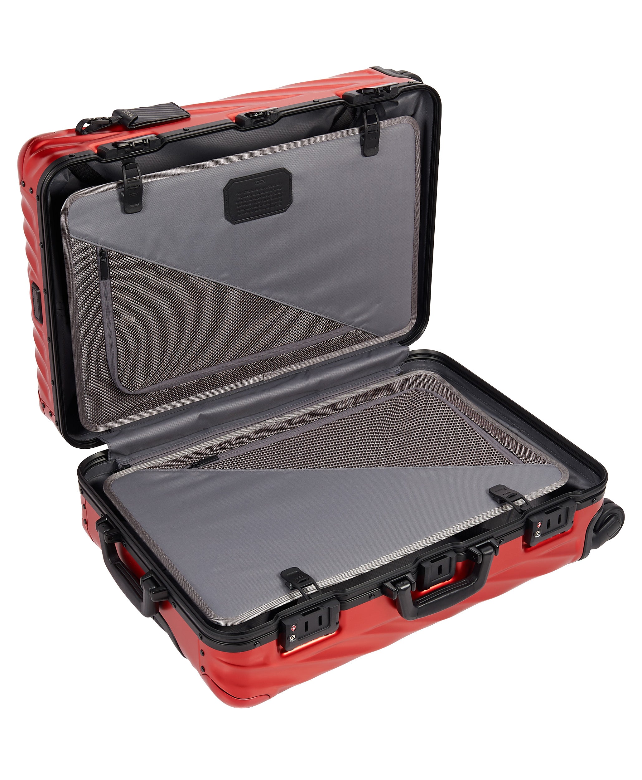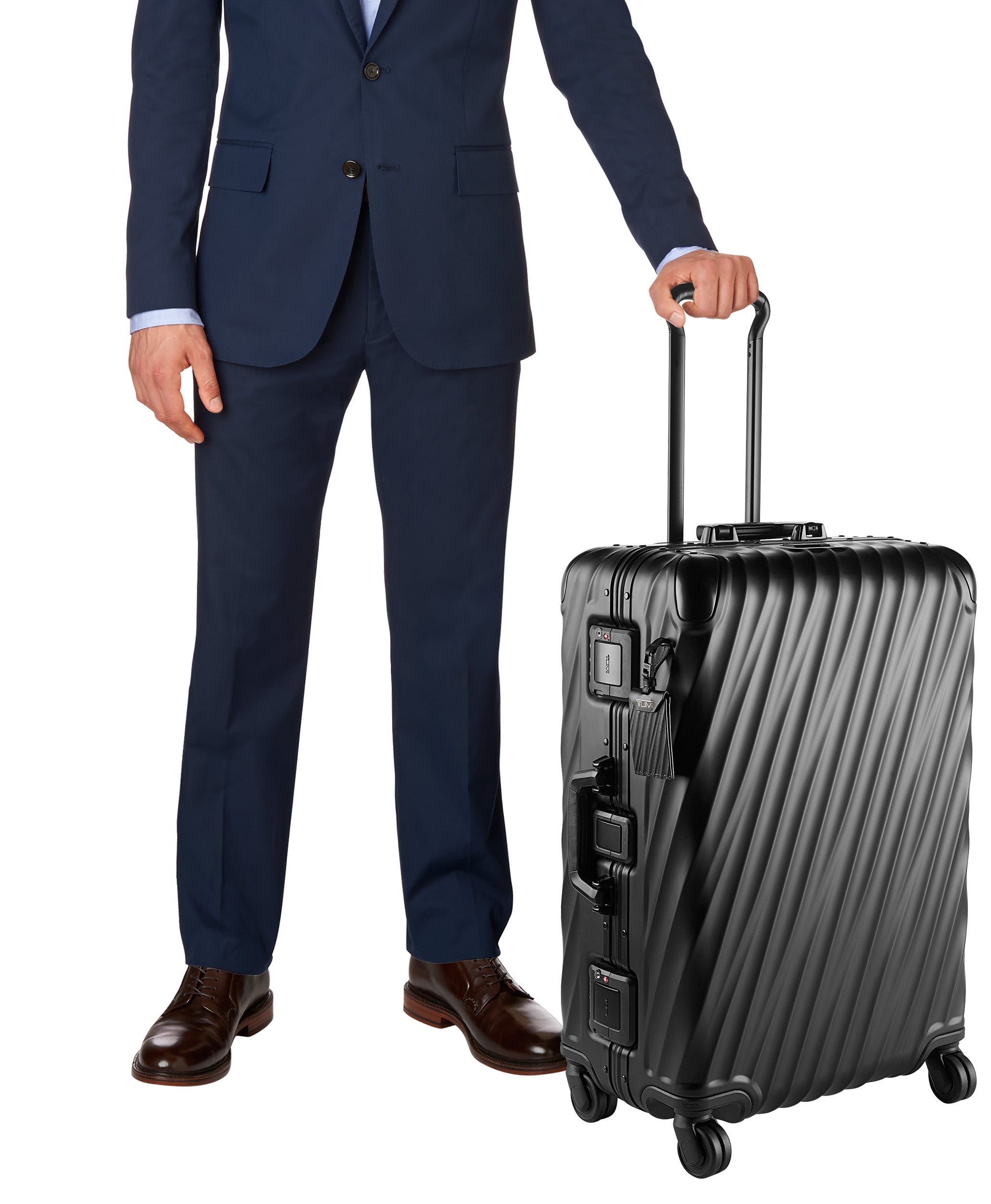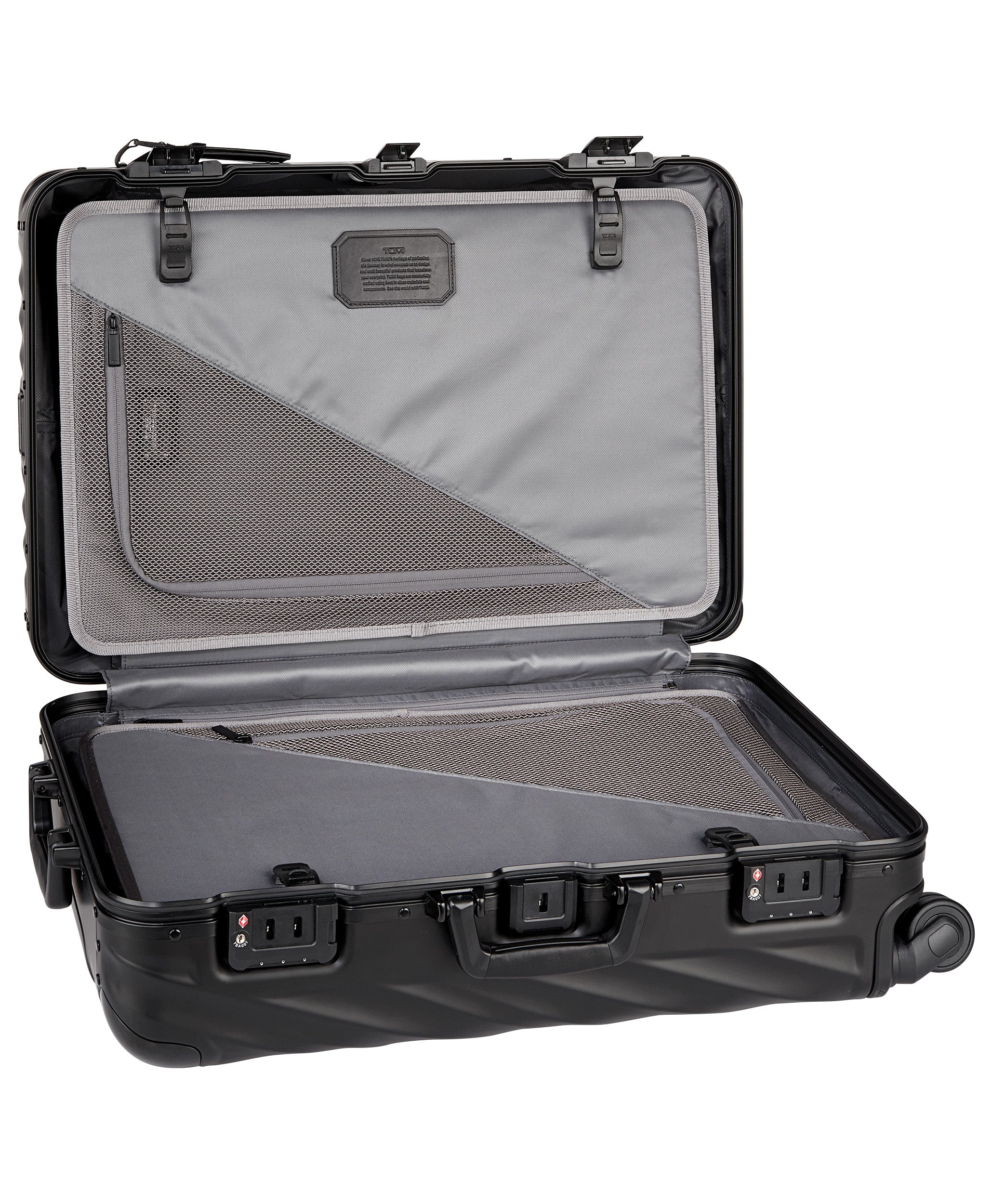 The farther you go, the more stamps on your passport, the better your story. Your 19 Degree luggage is part of that story. Exceptionally striking up close or from a distance, this super durable case boasts a modern silhouette with fluid looking, strategically contoured angles. Perfectly sized for quick trips and long weekends. Note that hanger shown is not included with this item it may be purchased separately 0052. As with all metals, wear and tear, including nicks, dings and slight denting, is to be anticipated and carried with pride for a journey well-traveled. To further add to the unique characteristics of your travel case, weve packed a variety of vintage-inspired decorative stickers inside your case.pspan style font-size: small strongUpon delivery, this item will require a signature.nbsp strongspanp