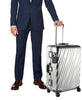 • Frame system opening, 2 TSA integrated combination locks with push button to open, 3-stage telescoping handle system with push button, Retractable top and side carry handle, 4 dual-spinning recessed wheels
