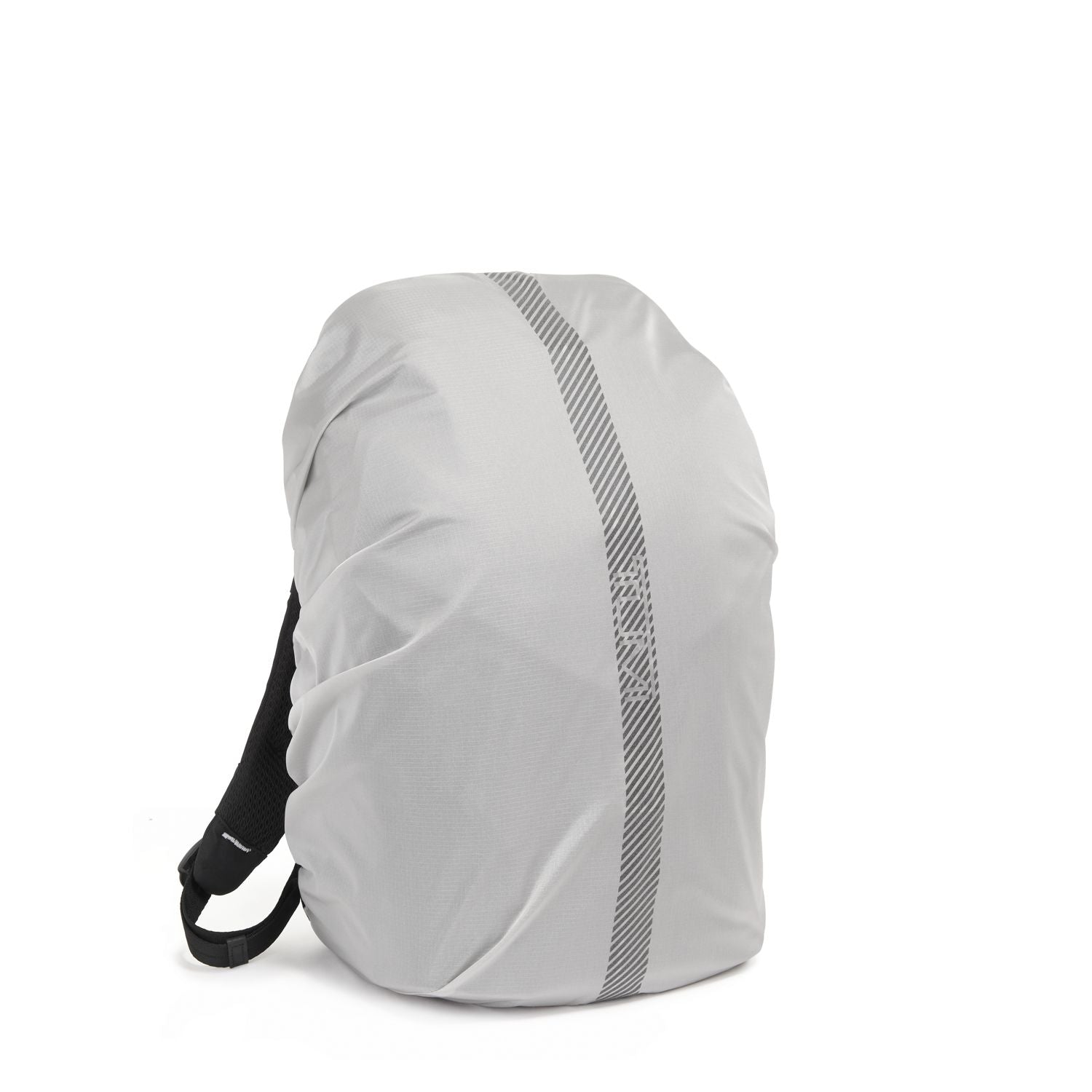 A neoprene-like fabric integrated with recycled materials makes this a sustainable choice for a backpack. Pockets throughout make organization easy while a water-resistant rain cover protects the pack.