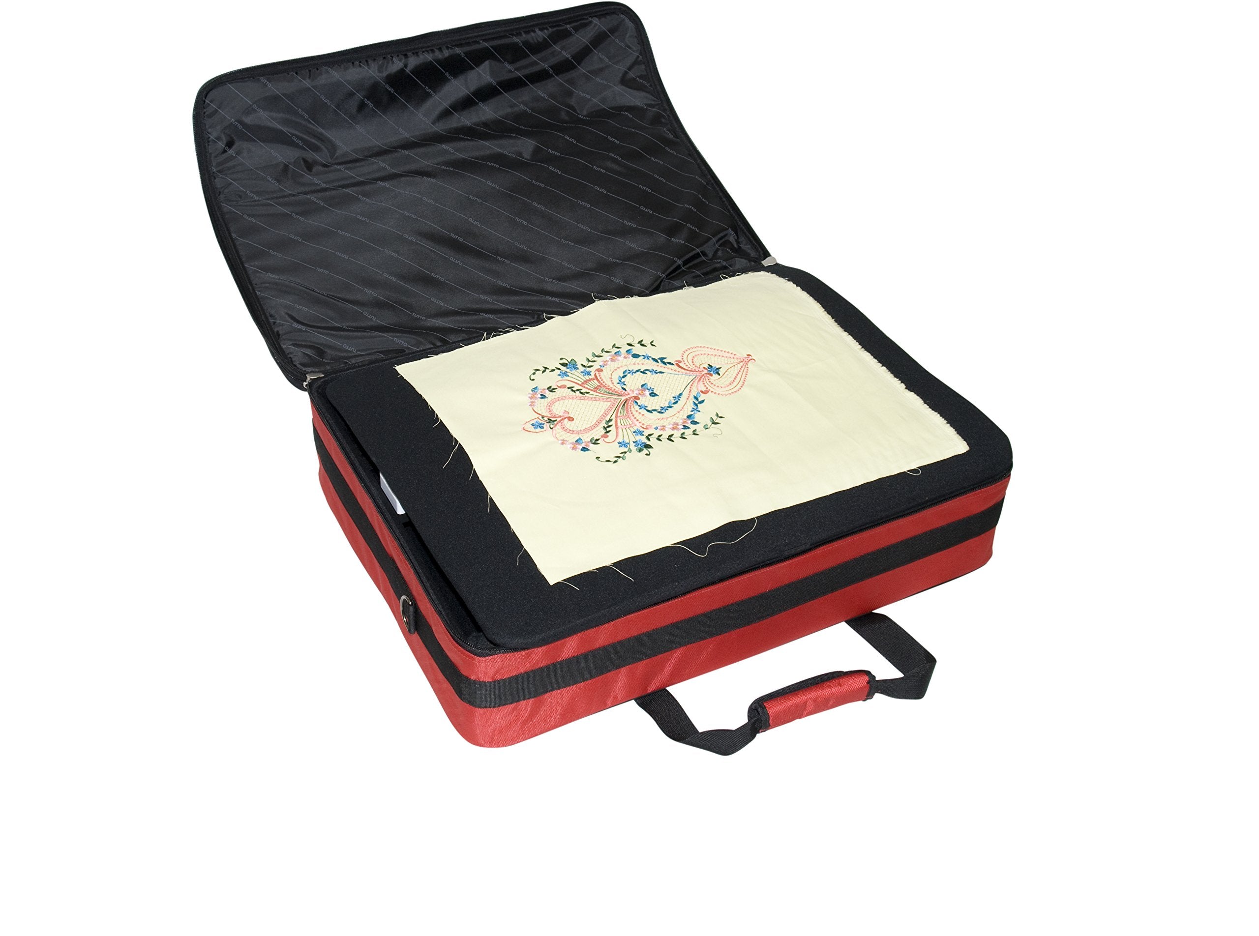 Ultimate Protection: The walls are lined with durable honeycomb board & padded with high density cell foams. Two inside straps to secure your embroidery unit.