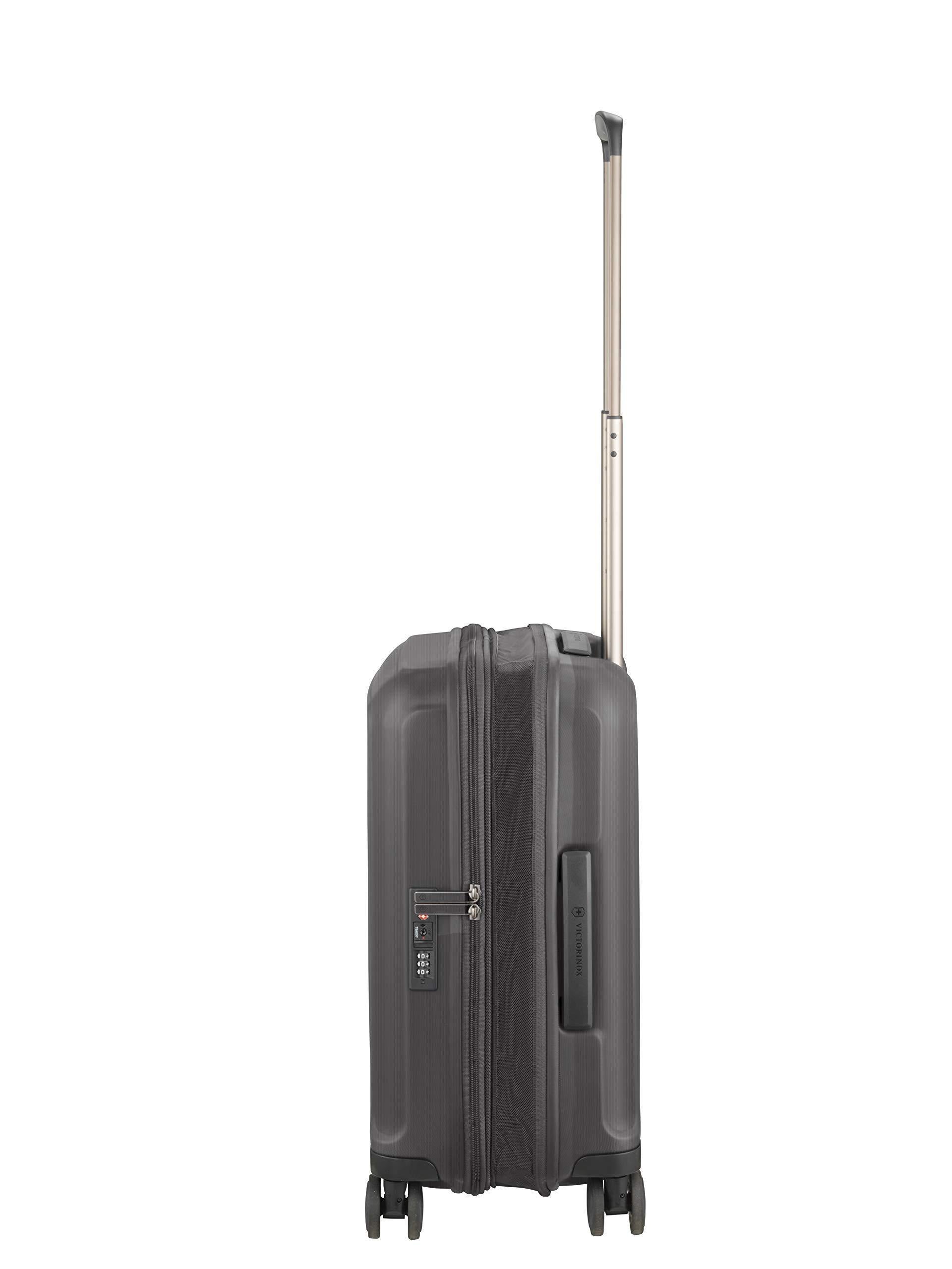 Color:Black The Werks Traveler 6.0 Global Hardside Carry-On features a numberof smart functions and elevated details while offering maximum packingcapacity and durability. The case is engineered with V-TriX Triple LayeredPolypropylene Composite which creates a lightweight and flexible case with aunique look - perfectly matching the nylon softside products of the samecollection. Exterior features: Swiss engineered 3-stop trolley system, 60mmdual caster Hinomoto wheels with Lisof silent tires for a smooth and quietroll, top and side soft-grip retractable haul handles, self healing YKK RCcoil-zippers, a hidden ID tray in the handle bezel that slides up to reveal aUSB port, pen and SIM card replacement tool, USB port connects to anintegrated USB cable that leads to a zippered interior hanging pocket where apower pack (not included) can be stored, expands up to 3 cm to increasepacking capacity, recessed Travel Sentry Approved combination lock allows TSAofficers to open the lock without destroying it and relock it afterinspection. The interior features: Pack More System which includes aremovable, expandable packing cube with a padded 15.4" laptop compartment. ThePack More cube provides organization and creates a flat packing surface forwrinkle-free transport of clothing. Also included on the interior are azippered divider wall that creates two separate packing spaces, x-shapedcompression straps to keep belongings in place during transit, a removablesuiter for packing hanging clothing and two zippered mesh pockets ideal foraccessories. 7.5 lb / 3.4 kg. 1953 cu in / 32 L [Expands to 2319 cu in / 38L]. 1 + 10 Years Warranty.
