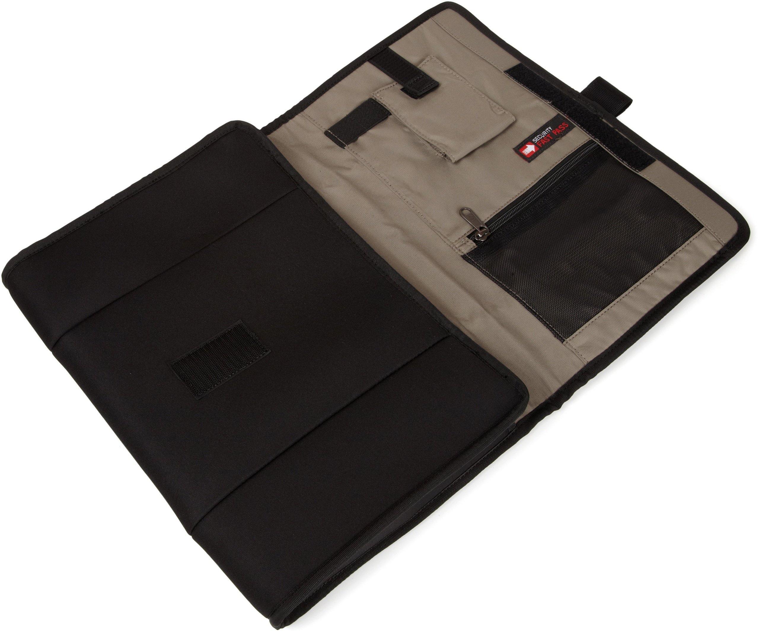 Perfect for an overnight business trip, this wheeled case opens flat to makepacking quick and easy sized to hold a 156 inch laptop removable, paddedsecurity fast pass sleeve makes getting through us airport security quick andeasy by allowing your laptop to remain protected inside the sleeve andcontains a zippered mesh pocket, electronic device pocket and pen loops