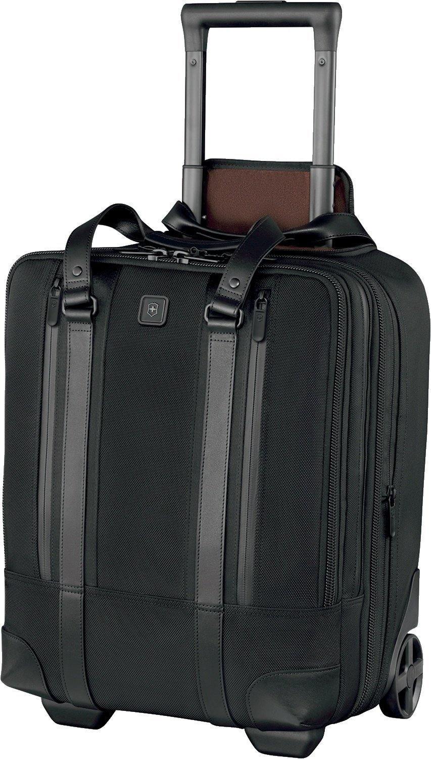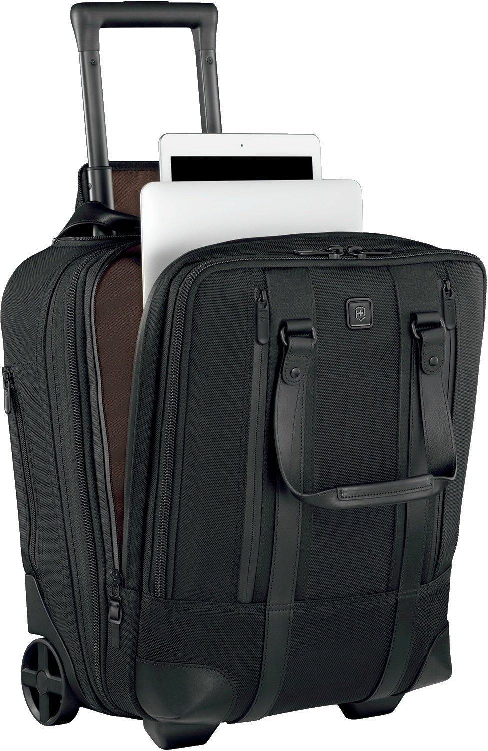 Travel with confidence knowing that this highly-functional laptop casecontains packing space for all your personal and business essentials. Paddedcompartment holds up to a 15.6 laptop, features lockable zipper sliders andcontains a Swiss-engineered protection system composed of Lanidur - an ultra-strong fiber. Padded tablet / eReader pocket with premium twill lining. One-touch, lightweight aluminum dual-trolley handle system. Clothing storagecompartment opens flat for easy packing, and features a full-length zipperedpocket and a full-length zippered mesh pocket. Snap-away gussets insideclothing storage compartment can be secured to hold the lid in a partiallyopen position for easy access when the case is standing upright. Frontorganizational panel contains a full-length zippered mesh pocket, electronicdevice pockets, business card pockets, USB flash drive pockets and pen loops.Exterior organization includes a full-length rear zippered pocket, two quick-access front pockets and a multi-purpose zip-away side pocket ideal for awater bottle or umbrella. Vertical orientation makes it easier to maneuver intight spaces. Expands 5 cm (2) for additional capacity. Water-resistantzippers on laptop and accessories compartments to protect your belongings.Custom YKK zipper pulls feature a thumb groove inspired by the Swiss ArmyKnife. Premium twill lining in select interior pockets. Leather haul handles.Swiss Tracker Bag Tracking Program will reunite you with your bag anywhere inthe world should it ever be lost “ for free.