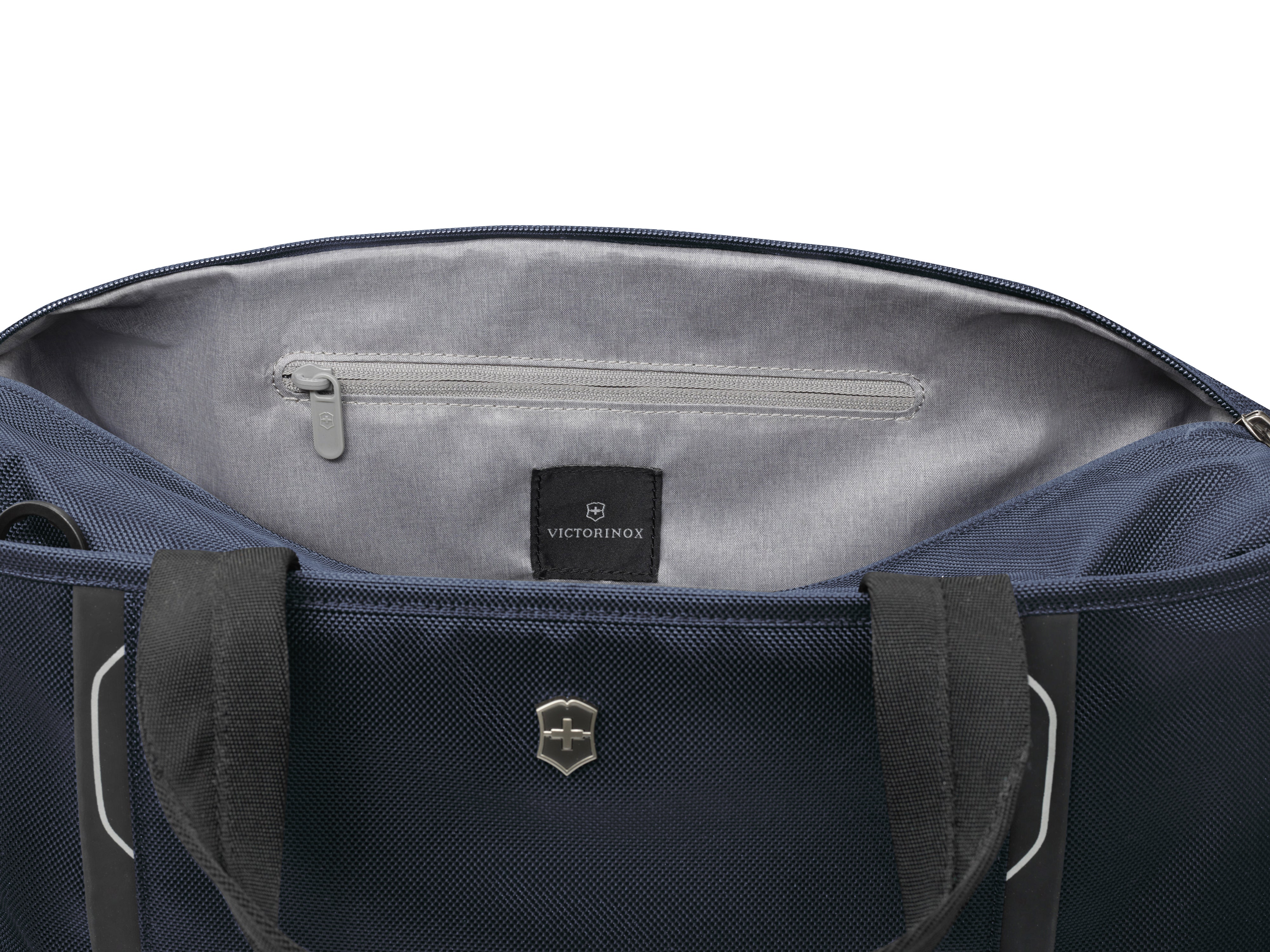 - Interior features zippered lining pocket.