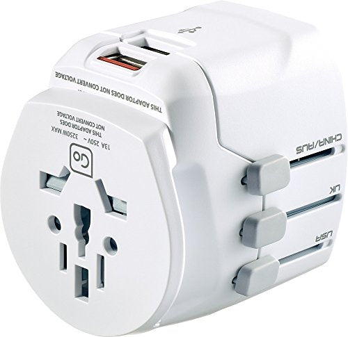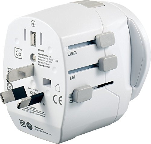 sockets. Simply press the button on top of the travel adaptor, slide out the
