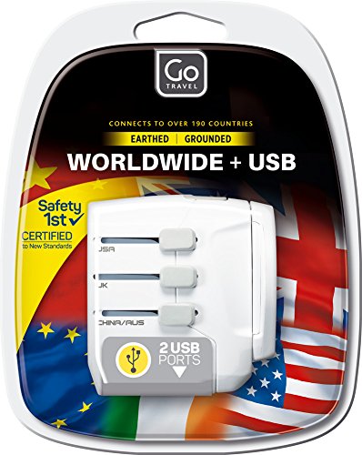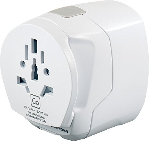 detachable Euro adaptor converts 3-pin earthed plugs to fit most European