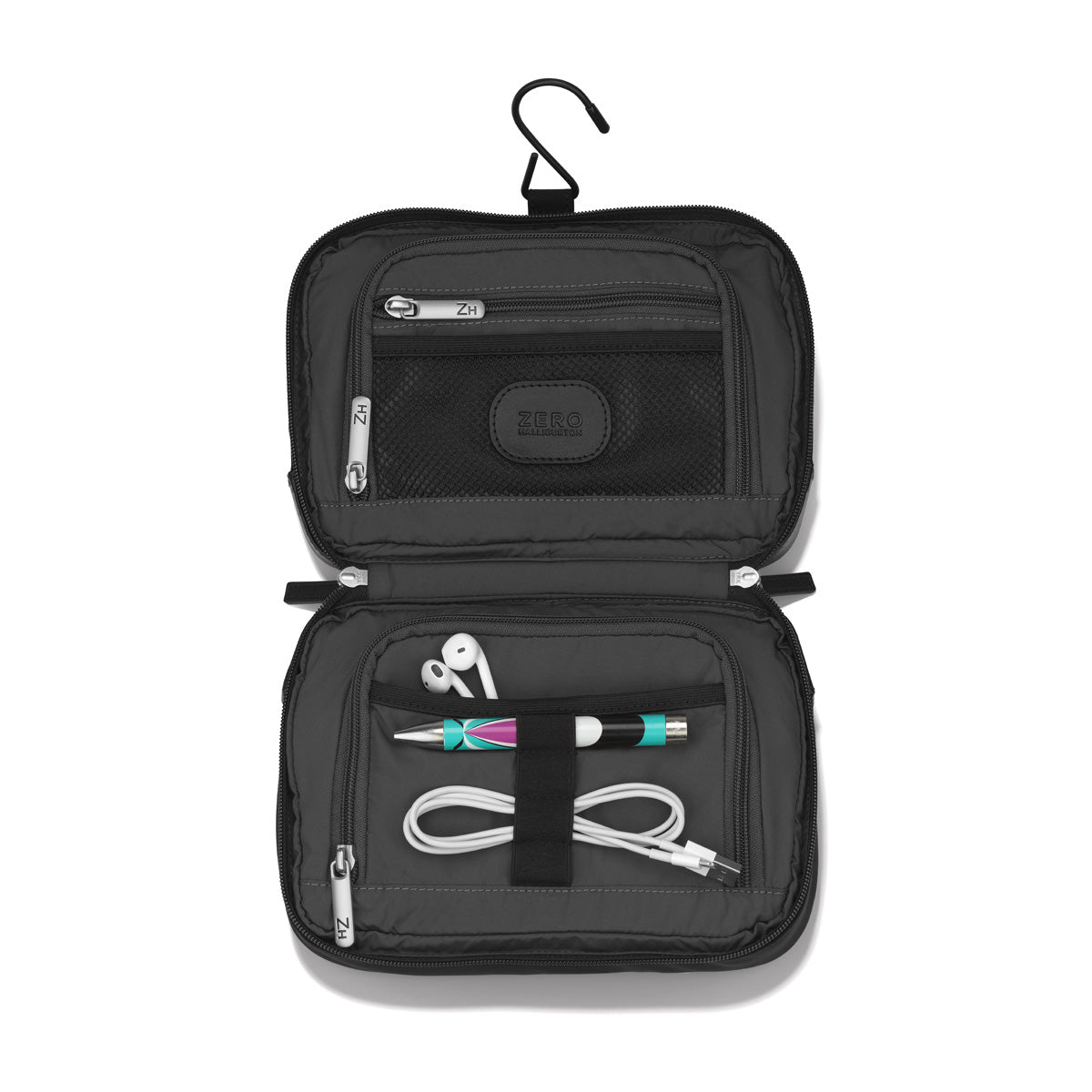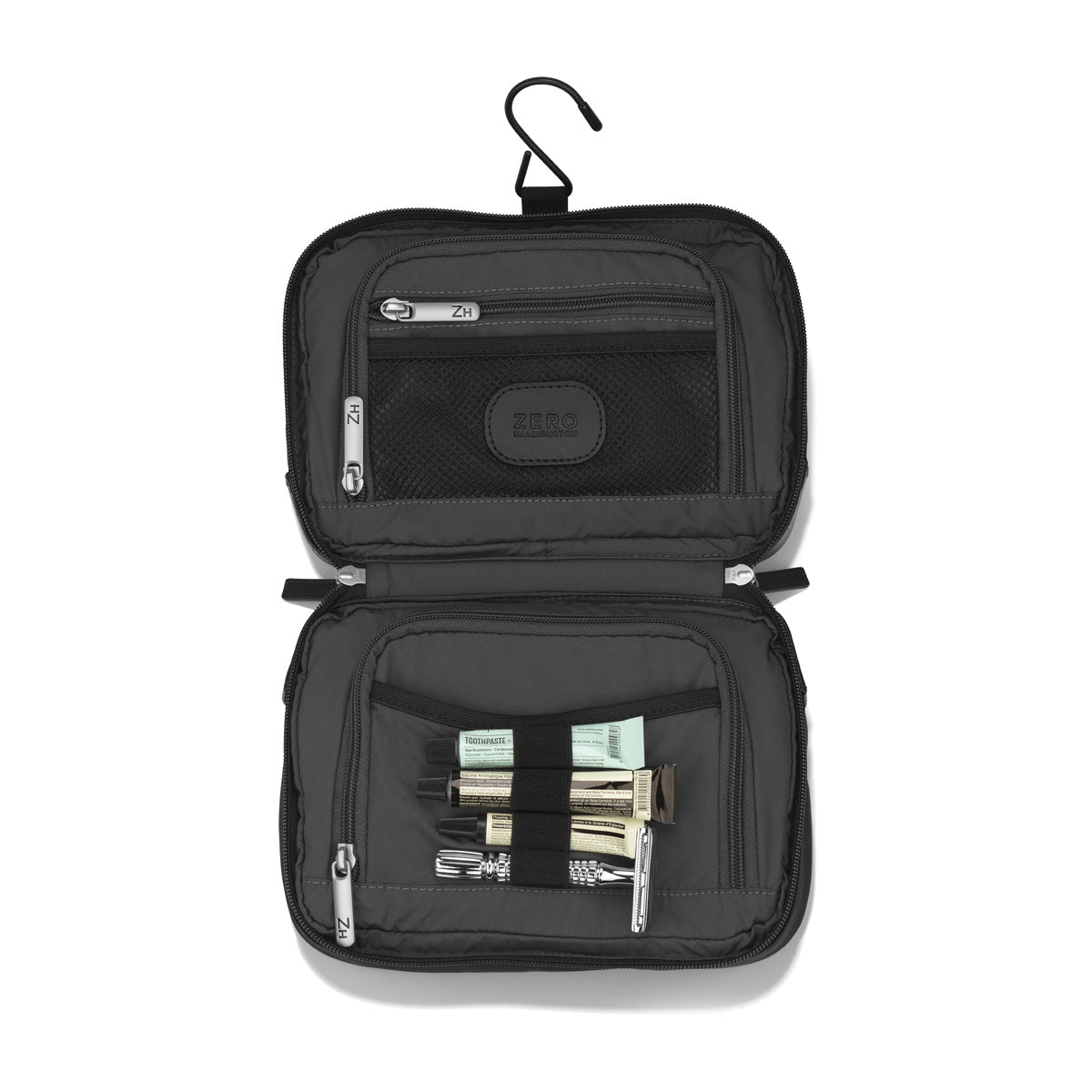 • Two stealth exterior pockets concealed under signature double rib design. YKK chrome double zipper laser-etched with ZH monogram.