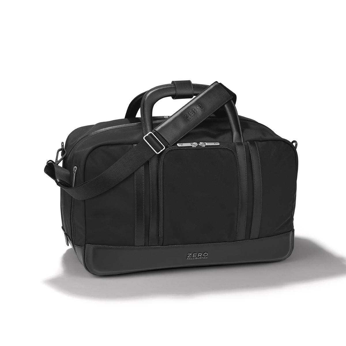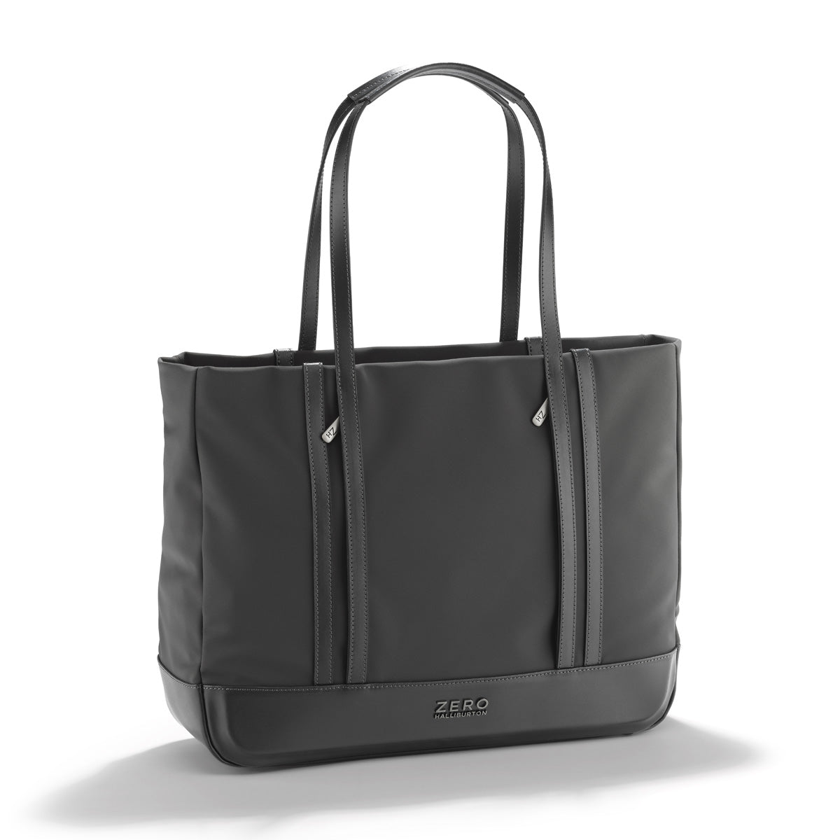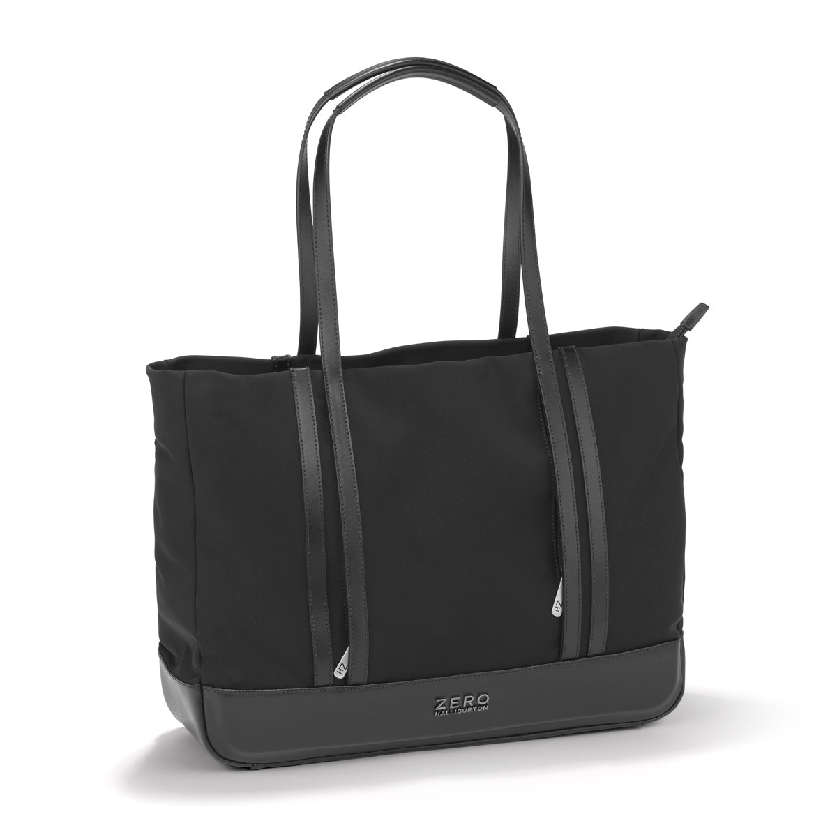 Made to move, this Nylon Tote navigates through the day as it effortlessly gathers the necessities of an on-the-go lifestyle. Constructed from a luxurious and lightweight fabric that resists everything from an unexpected drizzle to coffee spills, this soft, structured tote slides easily over the shoulder and closes effortlessly with one zipper. Inside, expect the same signature considerations, with zipped, and mesh pockets to keep all of your contents arranged and orderly and a convenient key leash to mitigate having to dig at the bottom of your back to find your keys. Two discrete exterior pockets concealed beneath the bonded leather double rib accentsa Zero Halliburton hallmark design feature keep essentials close at hand. A talented travel companion, the flexible tote also slides securely over your carry-on handle with a fall-free luggage hold.