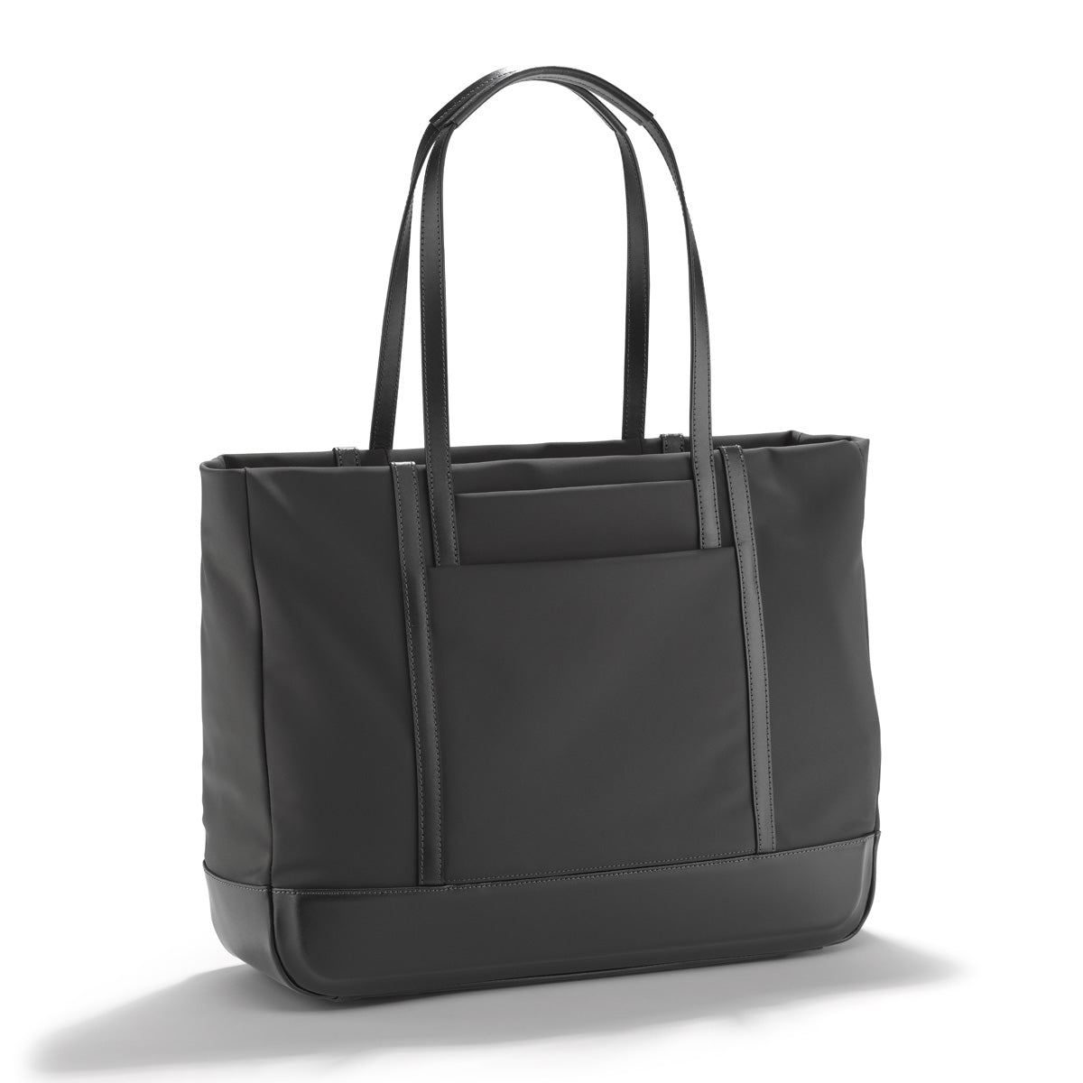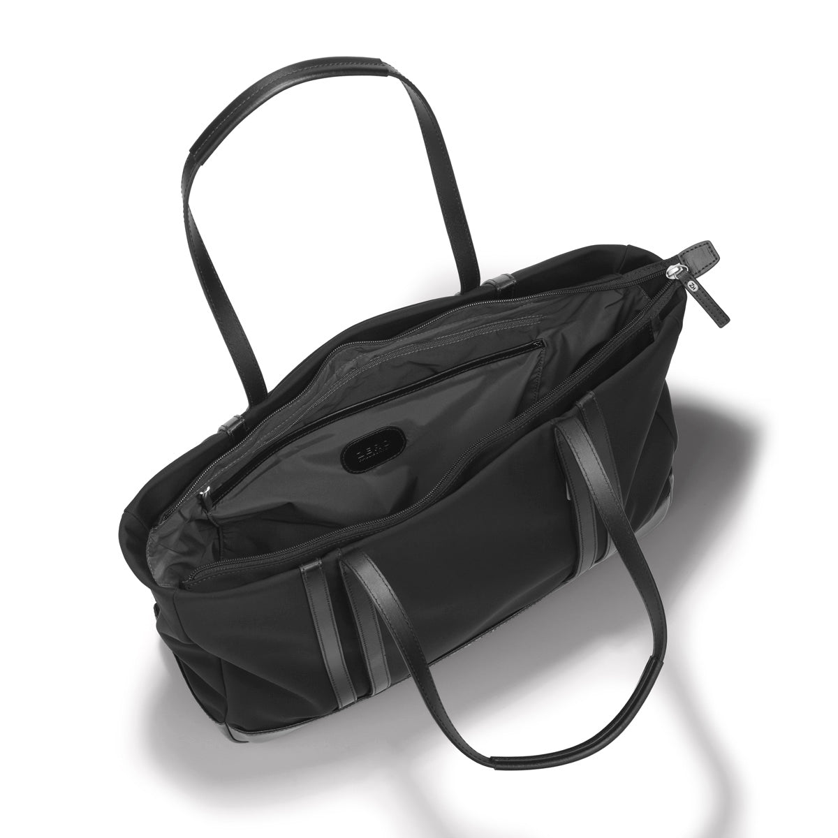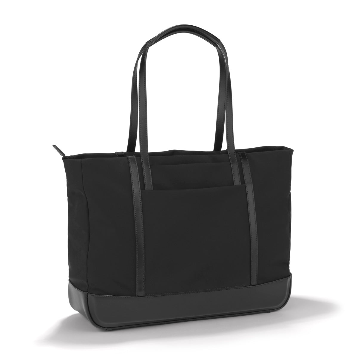 Made to move, this Nylon Tote navigates through the day as it effortlessly gathers the necessities of an on-the-go lifestyle. Constructed from a luxurious and lightweight fabric that resists everything from an unexpected drizzle to coffee spills, this soft, structured tote slides easily over the shoulder and closes effortlessly with one zipper. Inside, expect the same signature considerations, with zipped, and mesh pockets to keep all of your contents arranged and orderly and a convenient key leash to mitigate having to dig at the bottom of your back to find your keys. Two discrete exterior pockets concealed beneath the bonded leather double rib accentsa Zero Halliburton hallmark design feature keep essentials close at hand. A talented travel companion, the flexible tote also slides securely over your carry-on handle with a fall-free luggage hold.