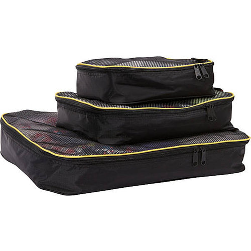 The A. Saks 3 Piece Paks are completely waterproof keeping all your toiletries and other accessories organized while on the road. These handy little pouches can be used to keep toiletries, jewelry, electronic and other personal accessories organized. The waterproof coating and backing makes these pouches perfect for small carry on approved bottles filled with liquids and shampoos. The lightweight see through mesh allows for content visibility so you don’t have to open each one to find what you need.