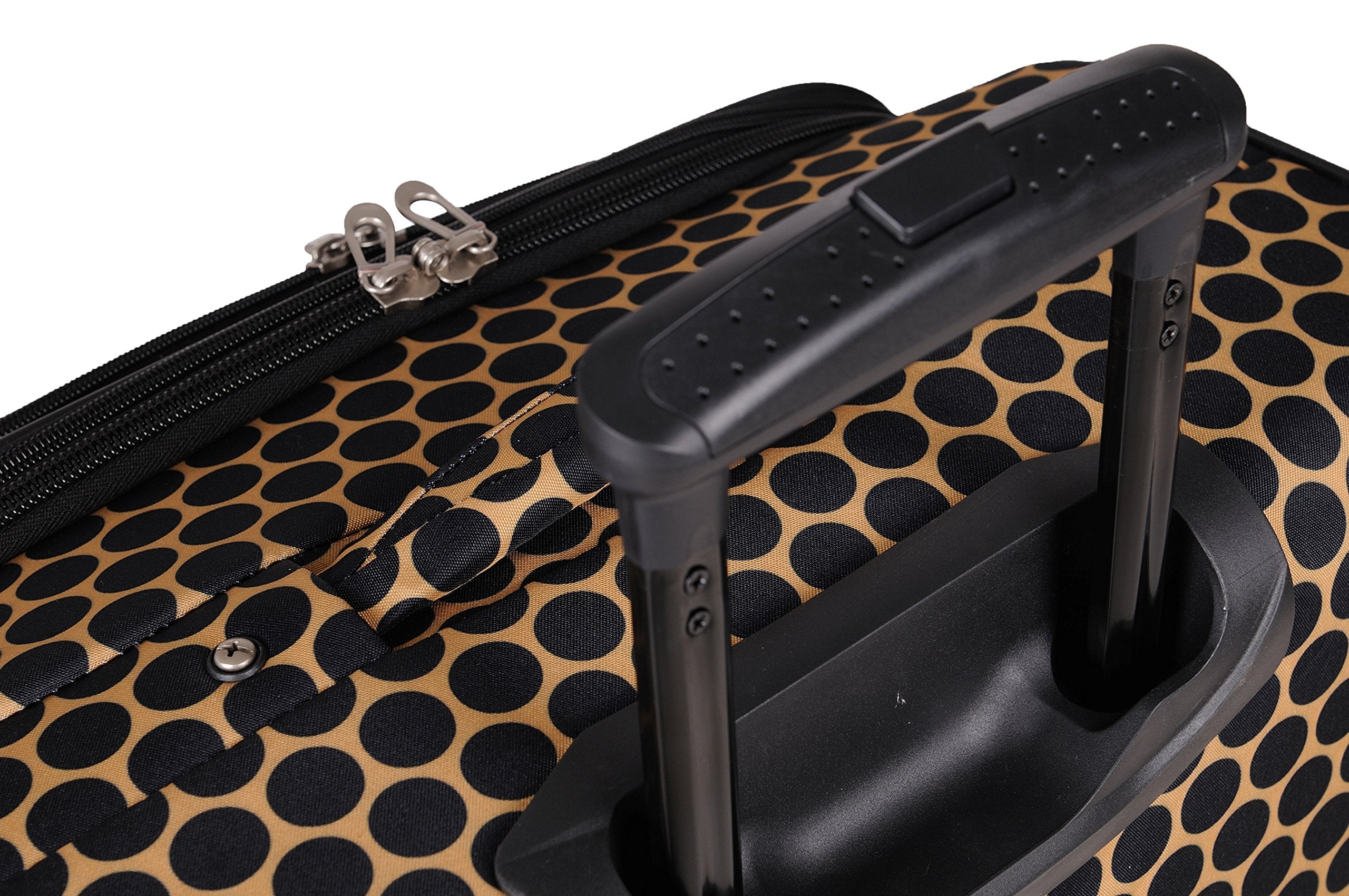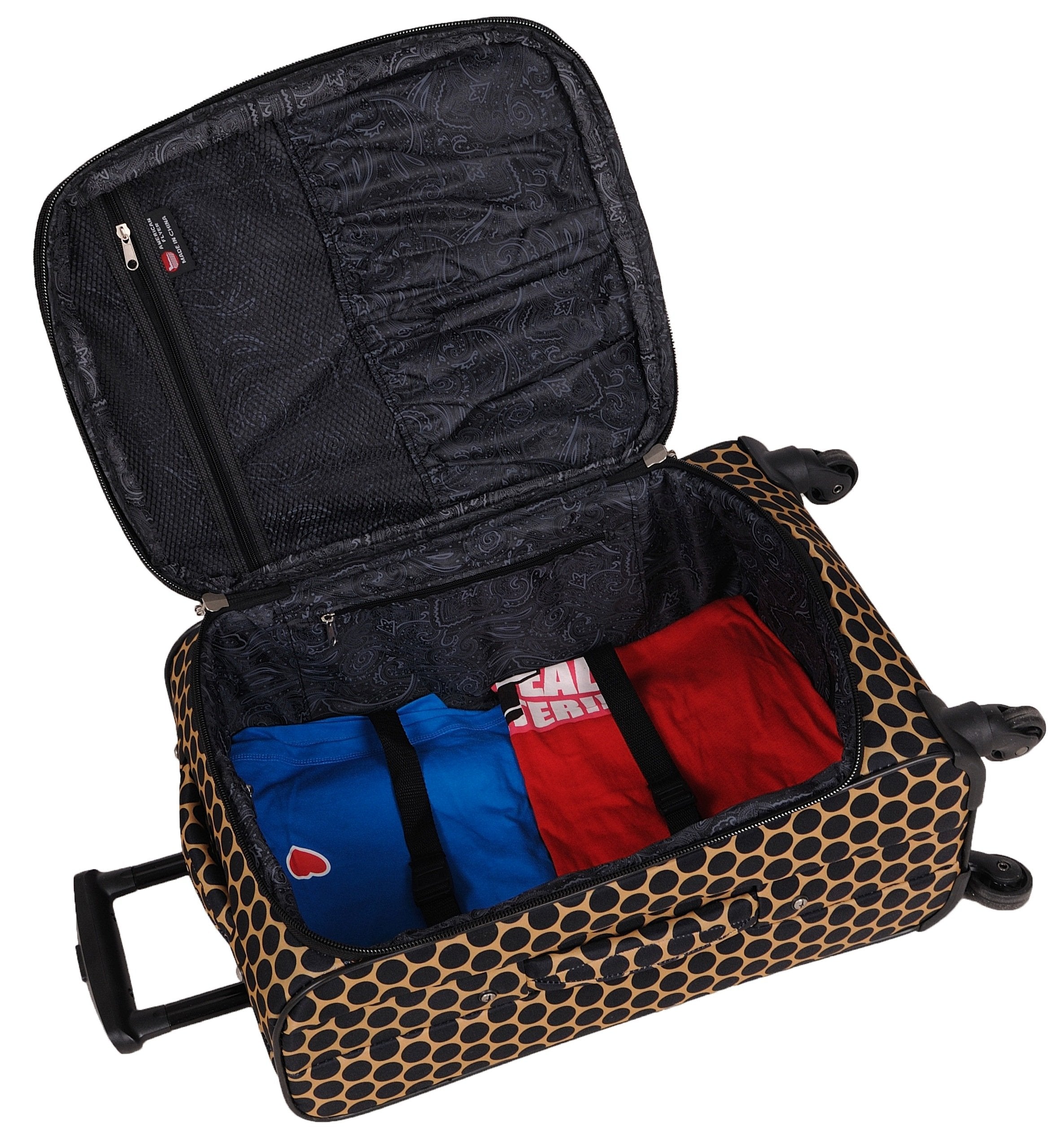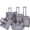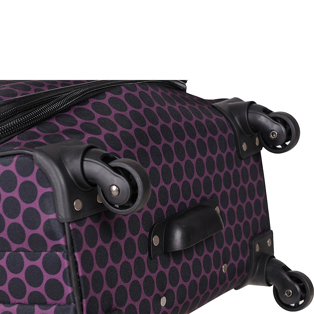 Large Spinner Upright 18"X12"X28", 10.60 lbs, Medium Spinner Upright 16"X10"X26", 8.70 lbs, Carry-On Spinner Upright 14"X9"X22", 7.40 lbs, Wheeled Duffel 18"X12"X12", 4.30 lbs, Personal Bag 12"X12"X17.5", 2 lbs, Uprights have 4 spinner wheels, 2" expandability for extra packing power, Uprights have locking telescoping handle, Uprights have top & side carry handles, Fully lined interior, Multiple interior & exterior pockets, Full corner piping for extra protection, Sturdy frame & lightweight construction, Wheeled Duffel has recessed telescoping handle, Personal Bag has carry handle & strap ,