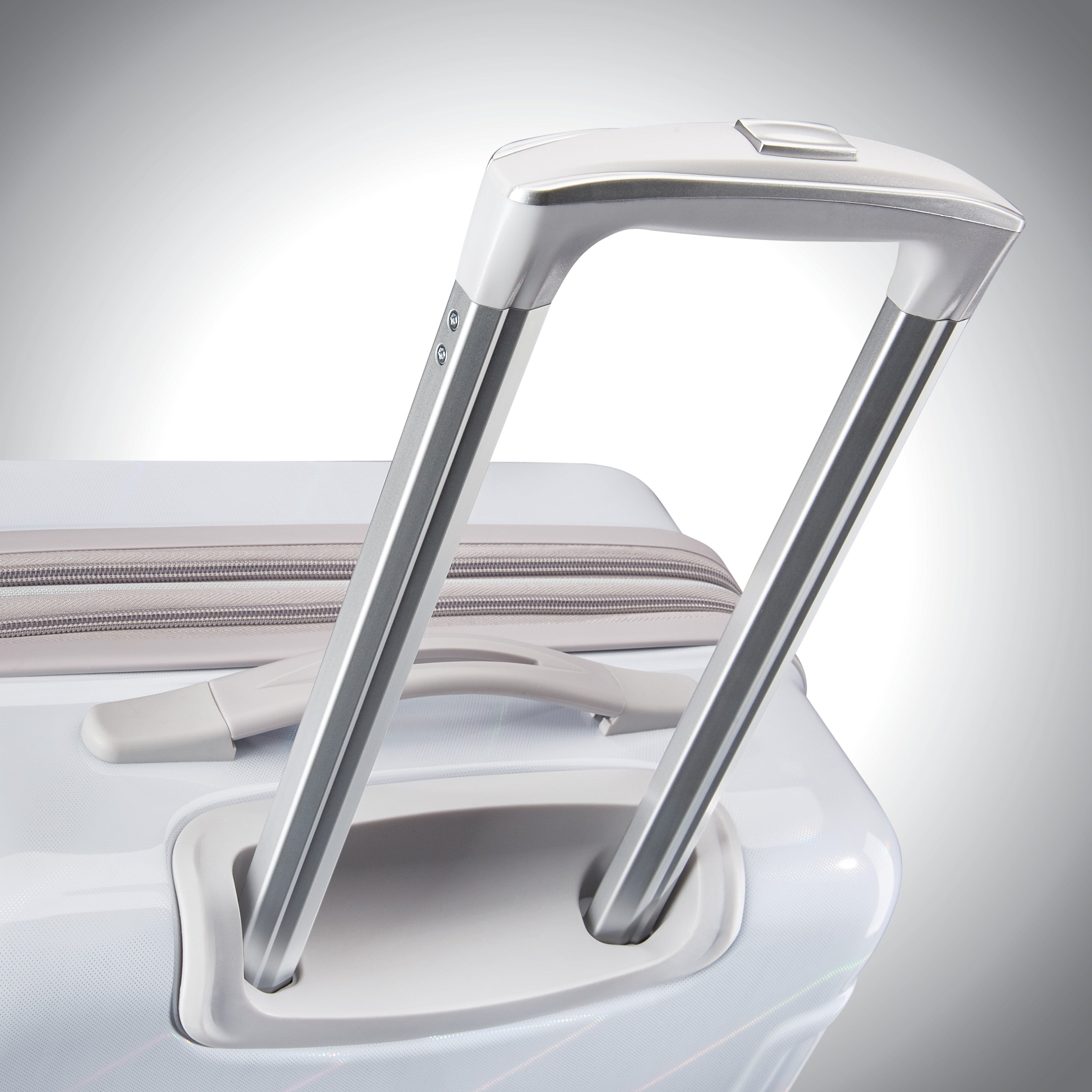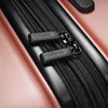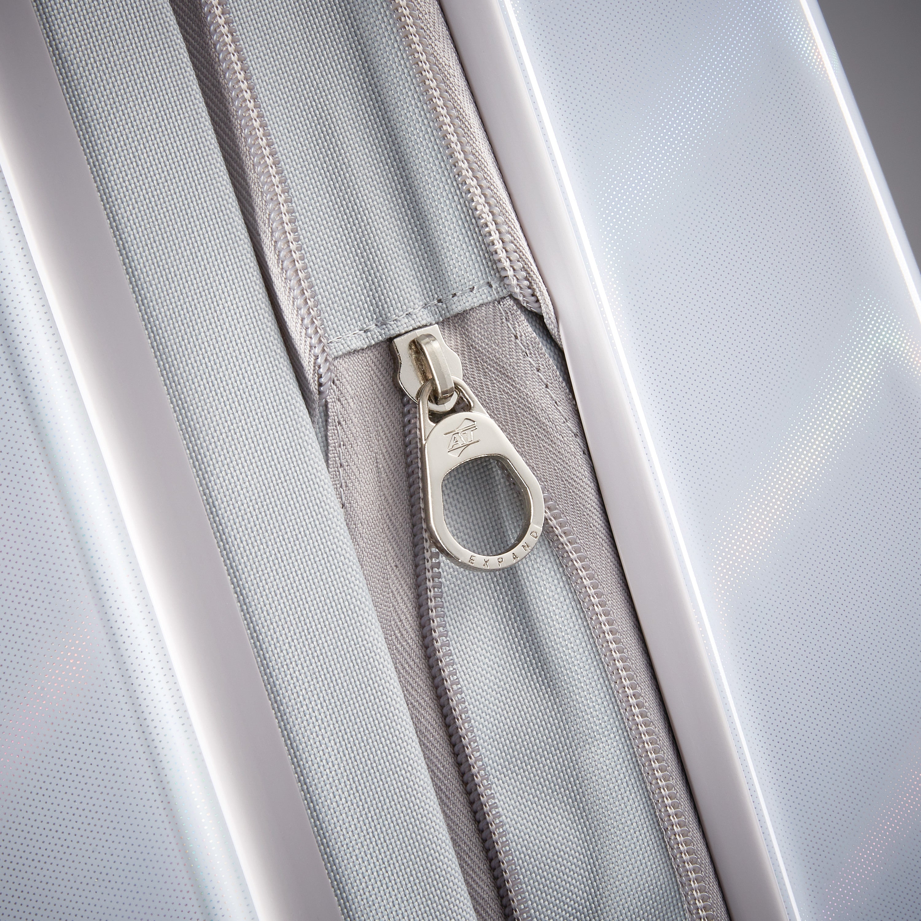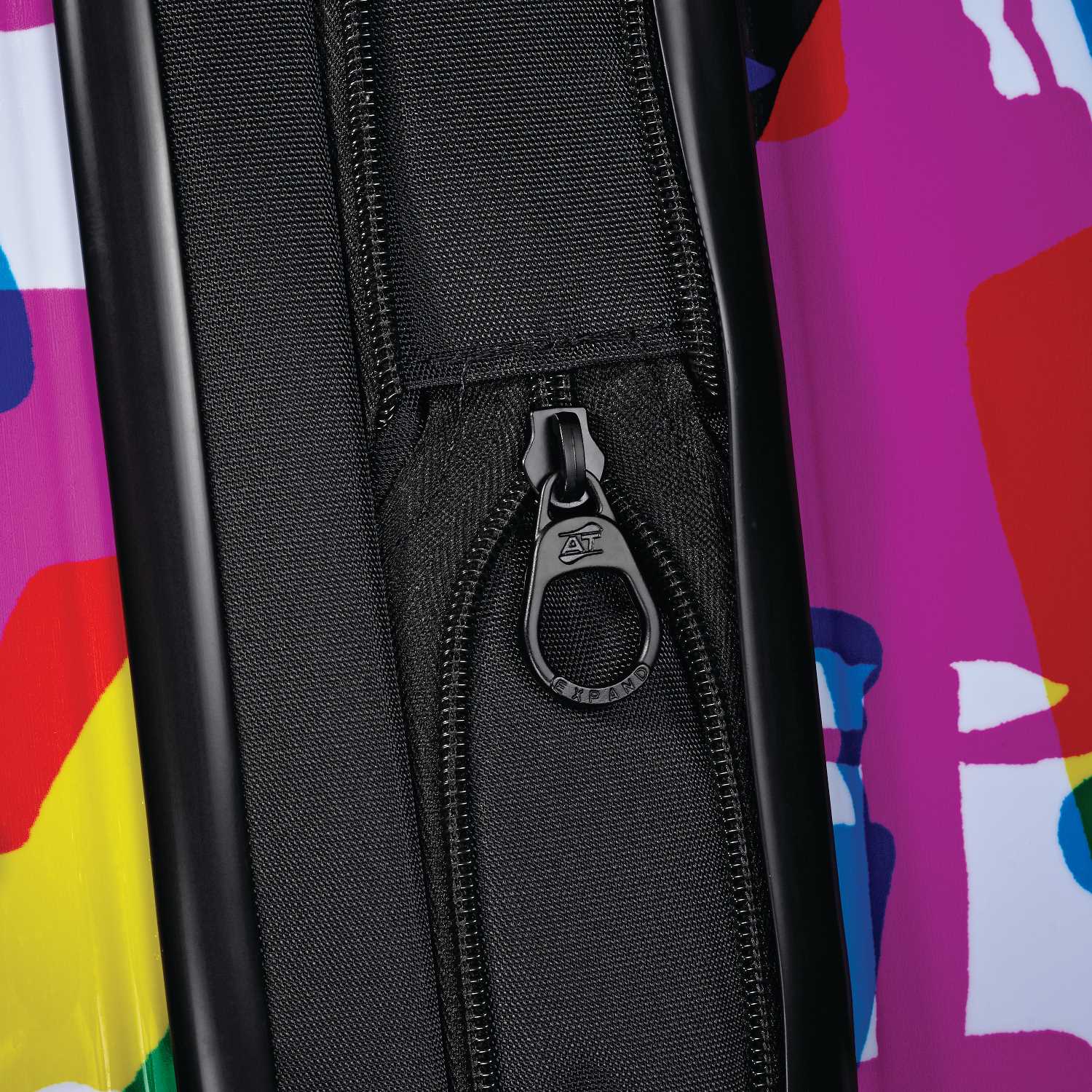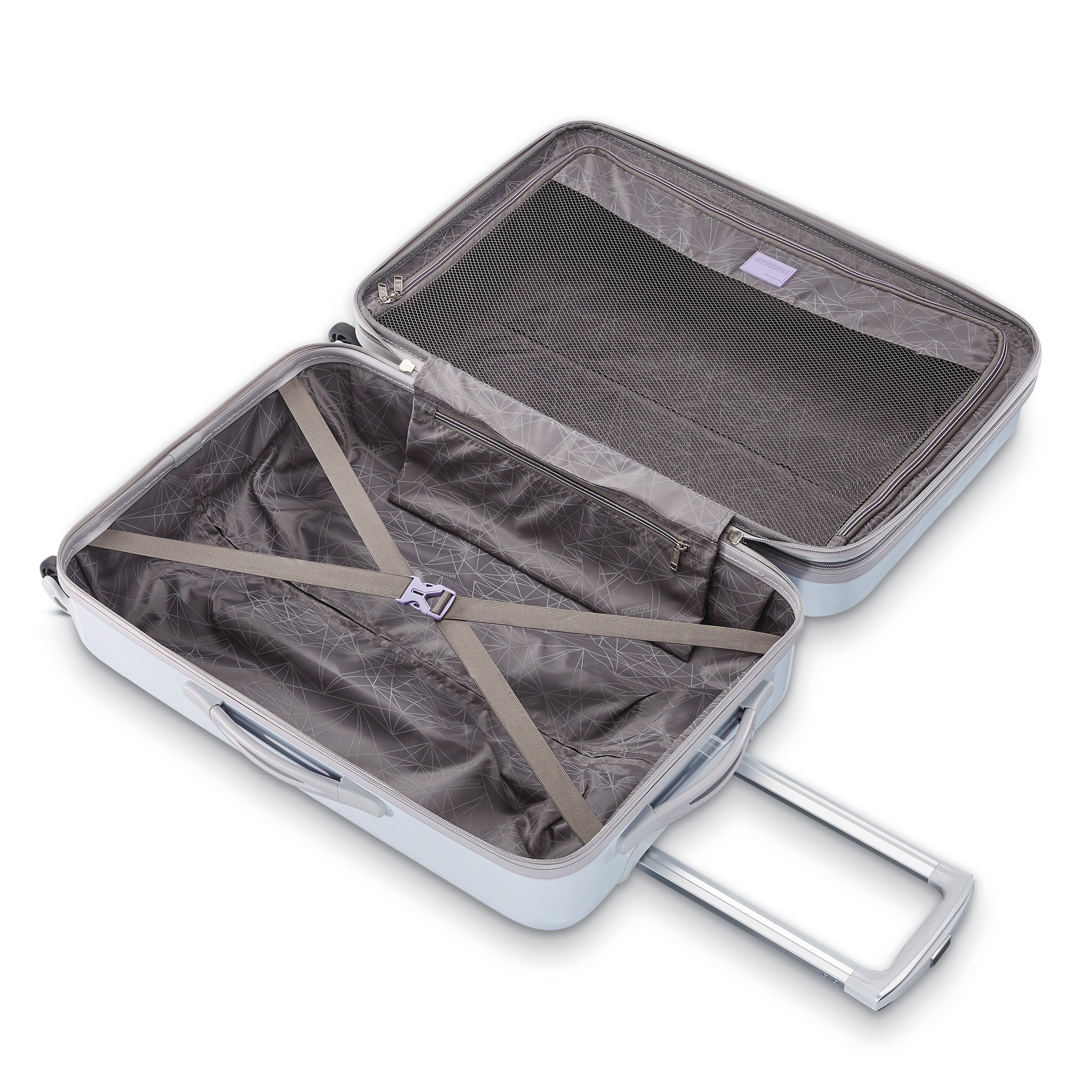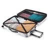 Book opening case with mesh divider and cross straps in main coparyment with zipped modesty pocket.. Single spinner wheels for a smooth ride.. All cases expand 1.5" for extra capacity.. .