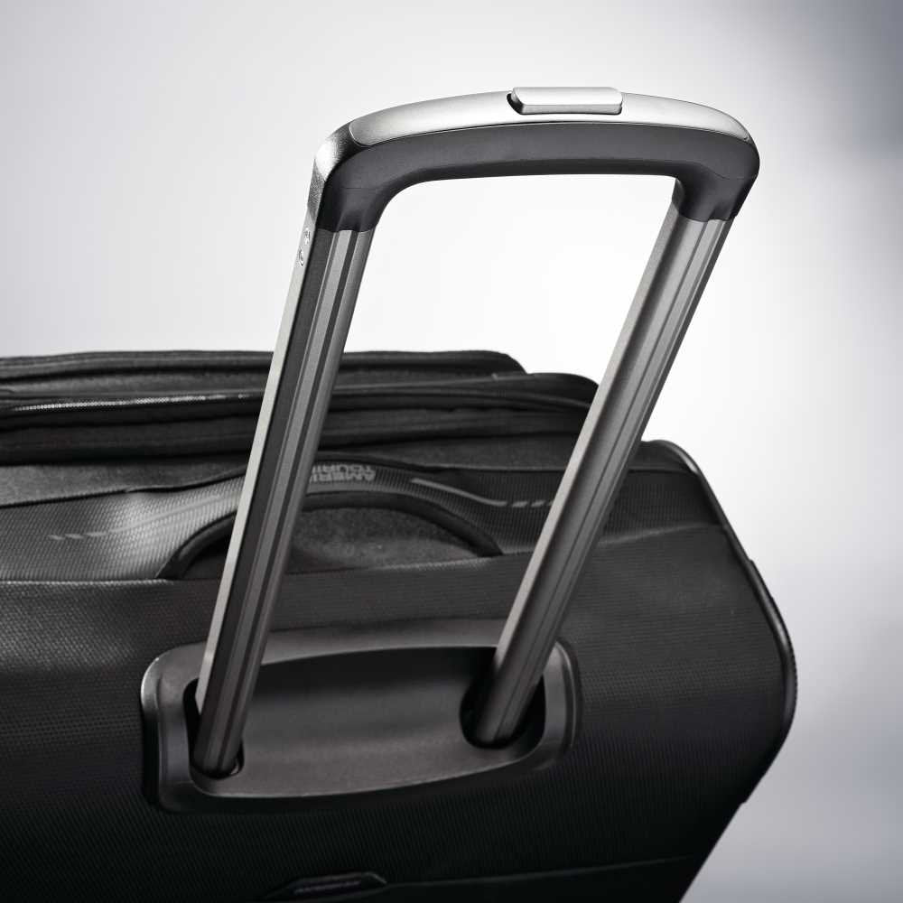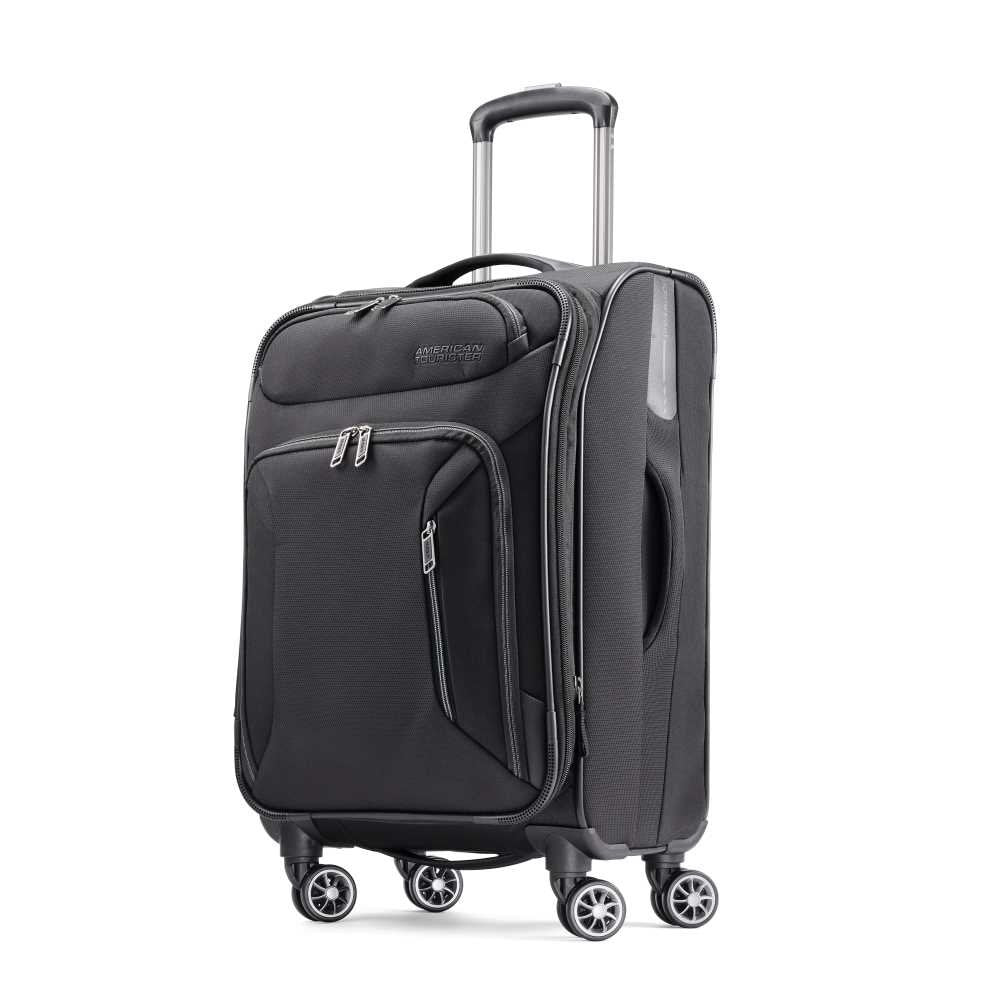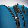 All cases expand 1.5" for extra capacity.. Color pop interior with removeable TSA 3-1-1 pouch, cross straps and large diagonal blouse pocket with two additional packing pockets.. Inline integrated top and side carry handles with neoprene grips.. Carry-on features a "Go Pocket" which provides an easy access pocket for water bottles, snacks, books, etc.. Dual spinner wheels with gunmetal hubs and molded kissing zippers.