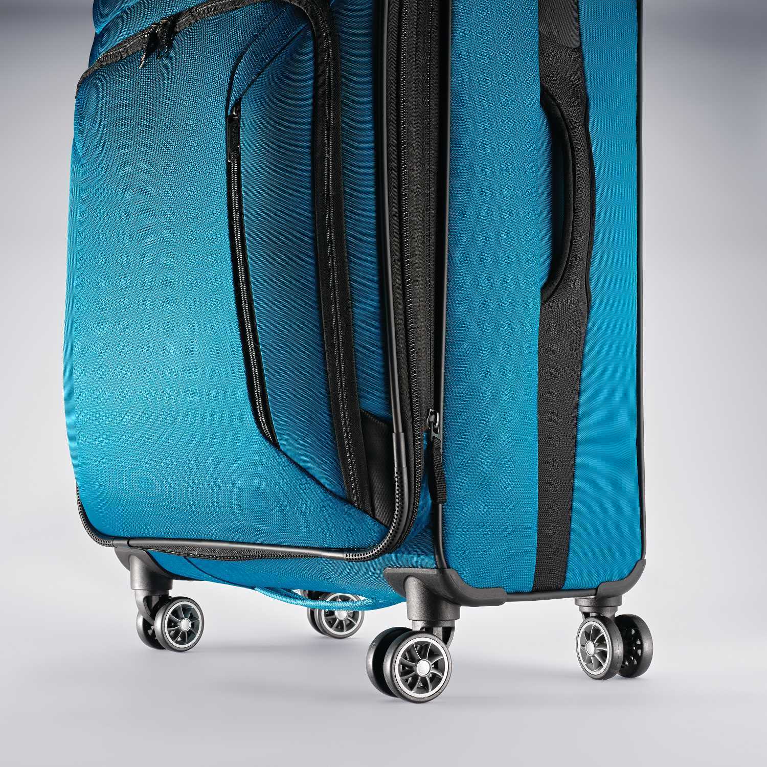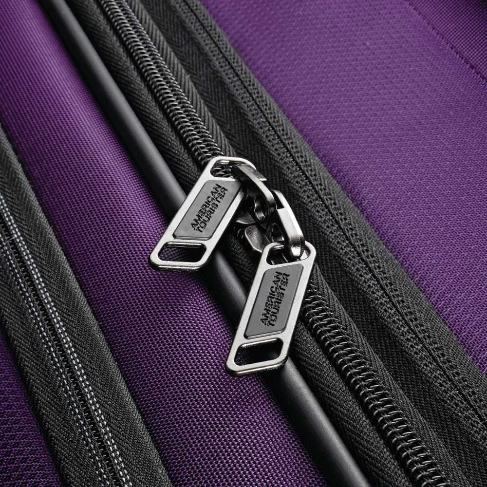 • Dual spinner wheels with gunmetal hubs and molded kissing zippers.