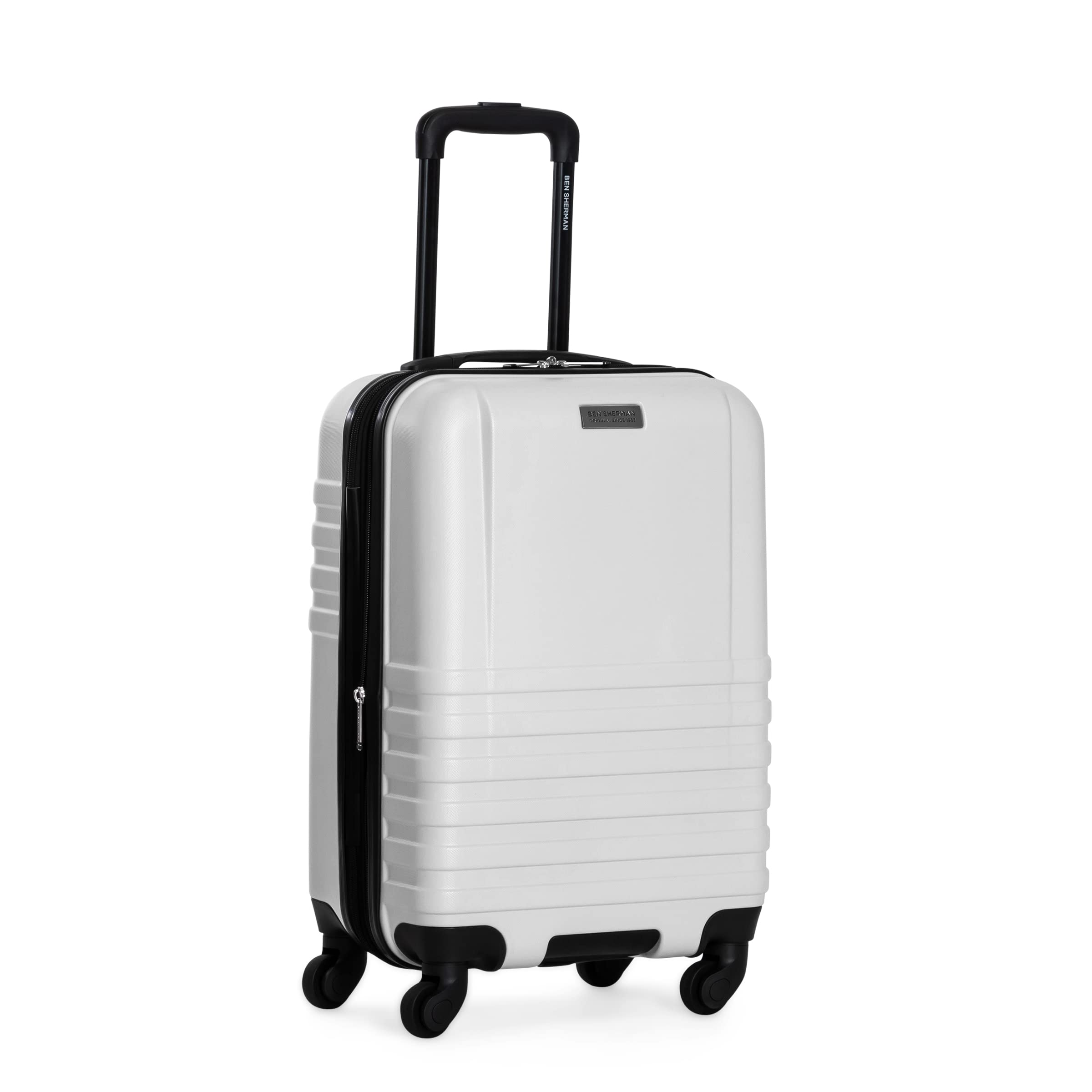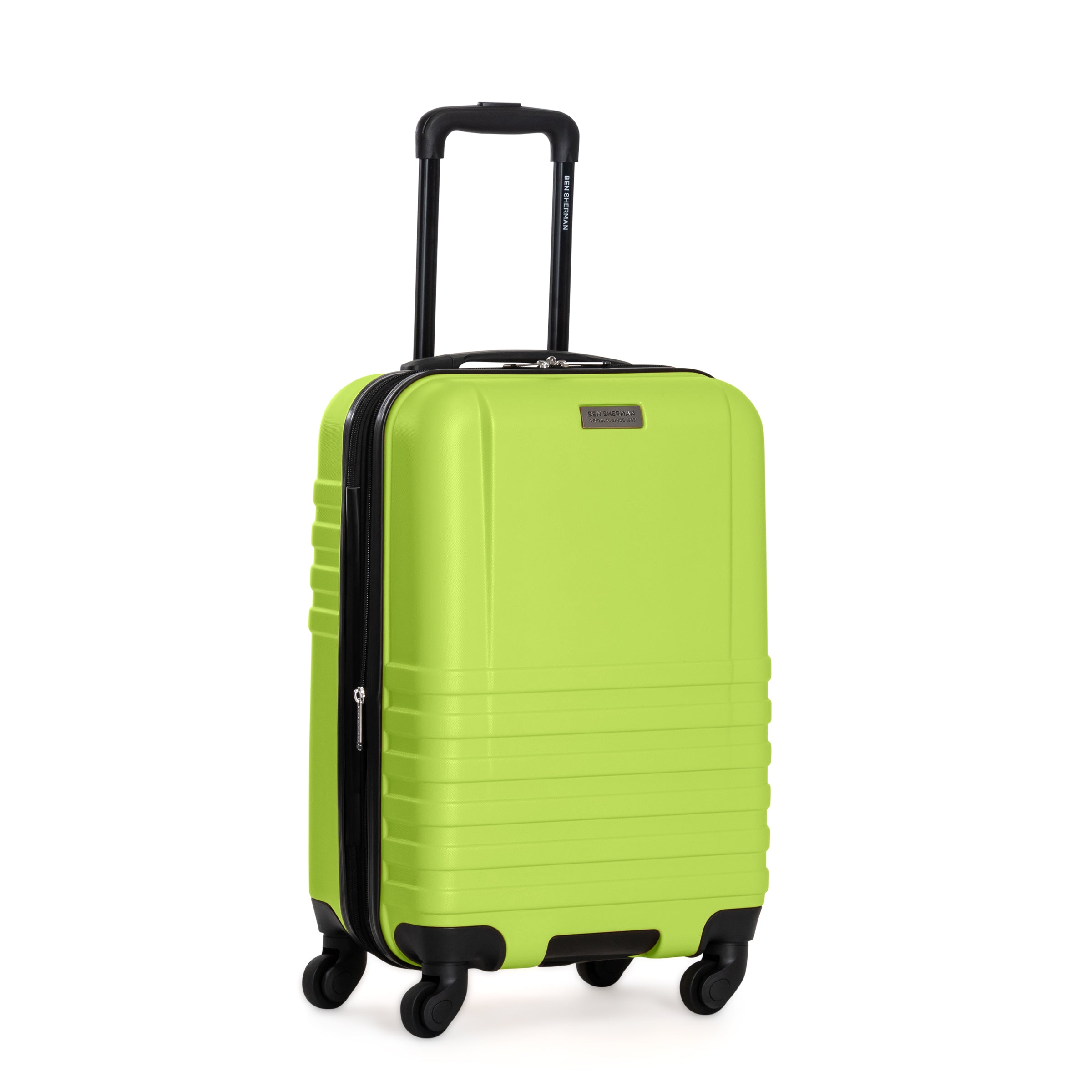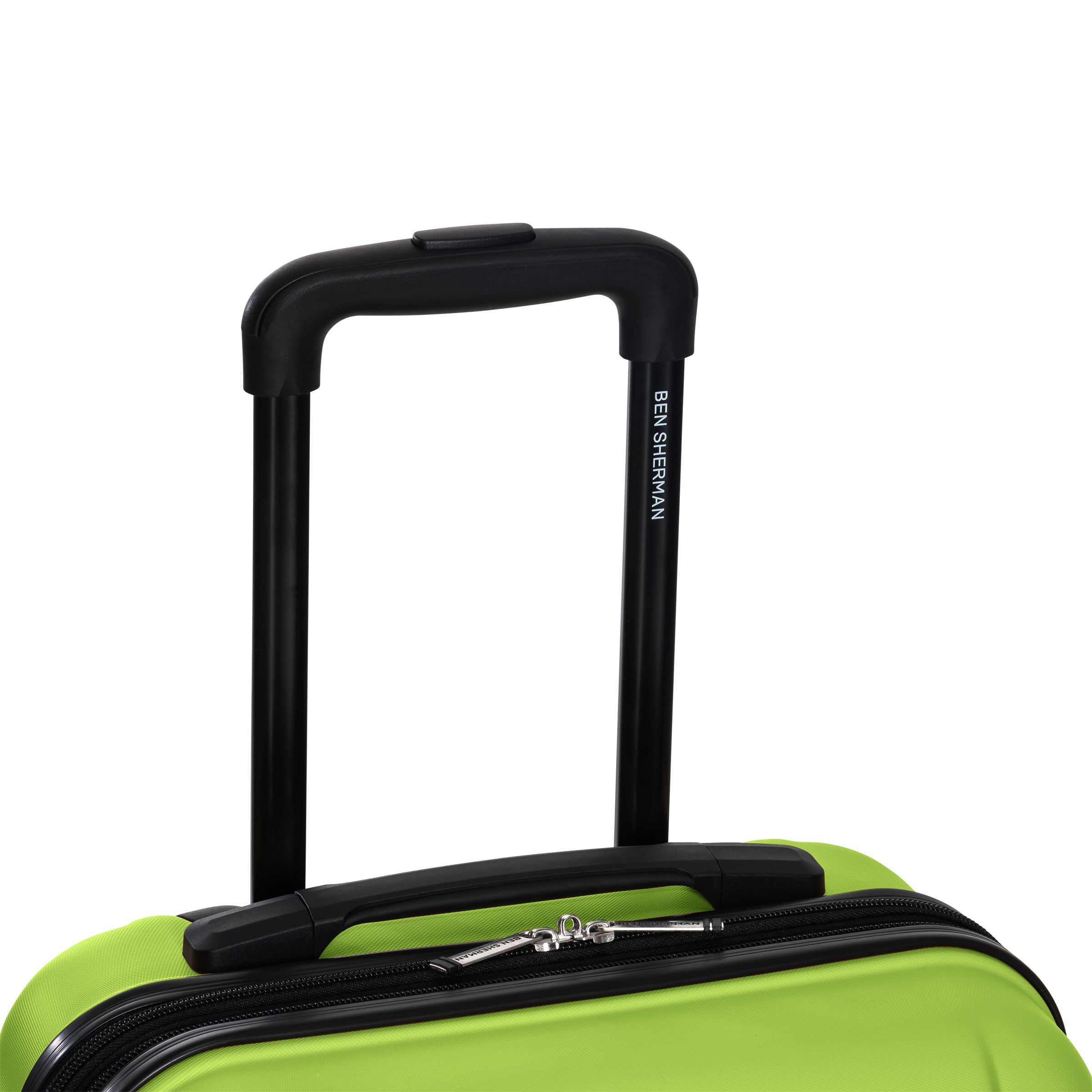 Nothing complements the fun excitement of travel quite like this Ben Sherman Hereford Luggage collection. The hard textured shell comes in a variety of colors to help your luggage stand out and compliment your style. The four-wheel spinners rotate 360 degrees for easy mobility, and the telescoping trolley handle puts you in control of it all. The fully lined rip-proof interior features garment restraint straps to keep your belongings from shifting during a trip, and the U-shaped zipper pocket in the lid allows for double-sided packing. In addition, a small hanging zipper pocket adds a bit of extra organization space for personal belongings. Two inches of built-in expansion Maximize your packing ability. Finally, the 28-inch luggage features side handles and side feet, adding another way to carry your luggage and protect the shell from wear and tear. 20" Dimensions: 22" H x 14" W x 10" D. 20" Weight: 6.35 lbs. 28" Dimensions: 30" H x 19.5" w X 13" D. 28" Weight: 9.7 lbs. Dimensions include wheels and handles. Backed by the manufacturer's lifetime limited warranty.